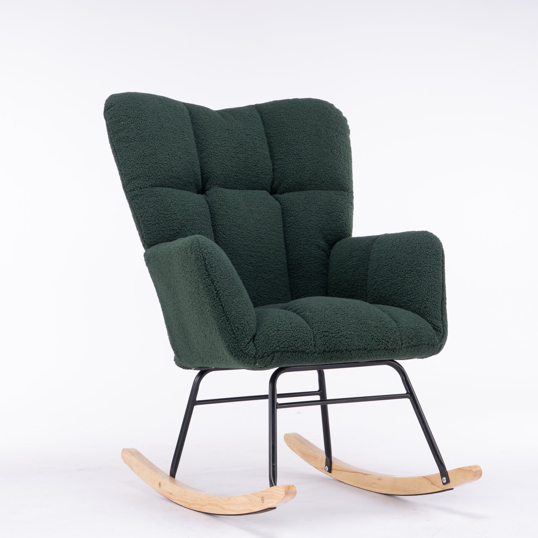 Green teddy fabric upholstered rocking chair THROKUTS TEDDY GREEN UK