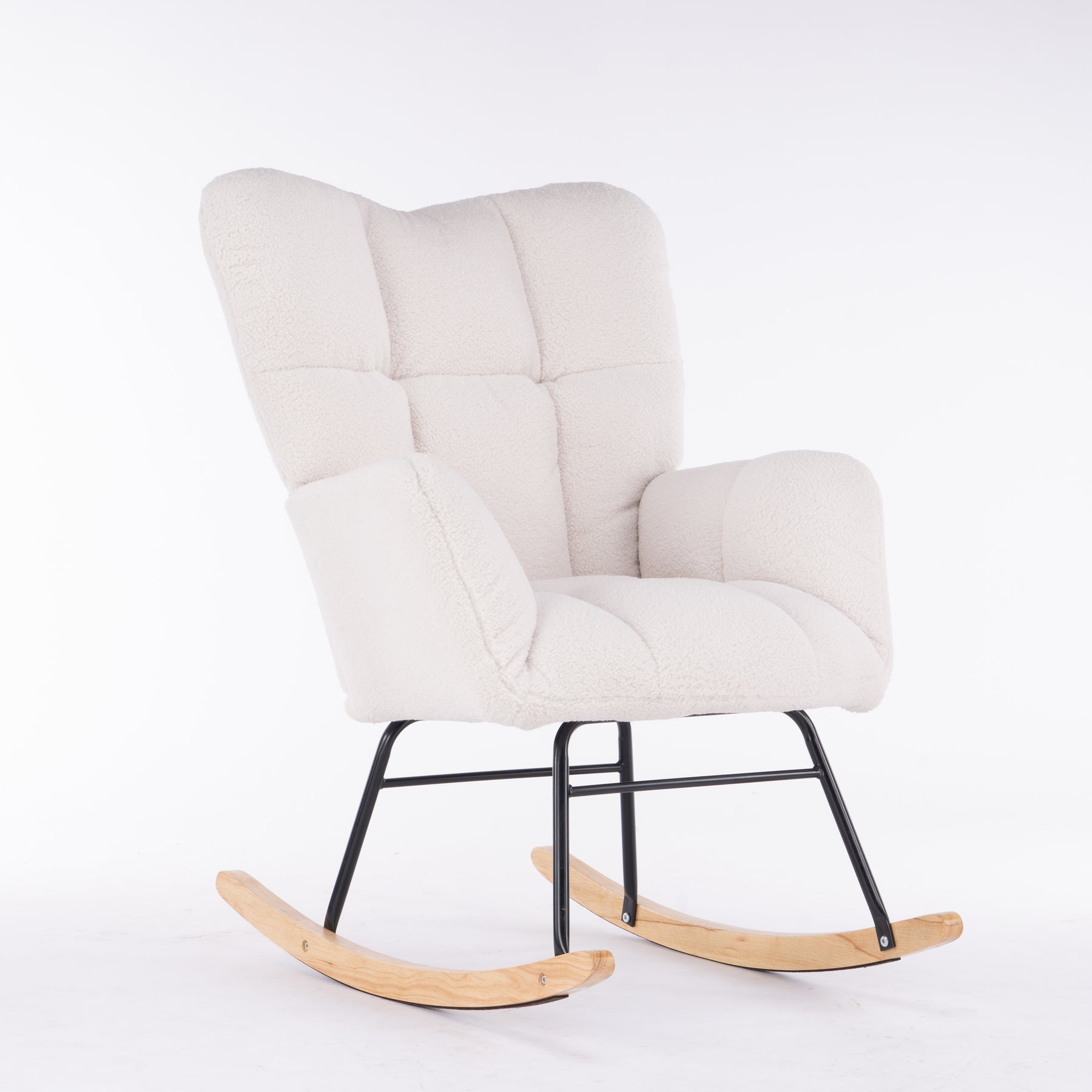 Ivory white teddy fabric tufted upholstered rocking chair SIHID UK
