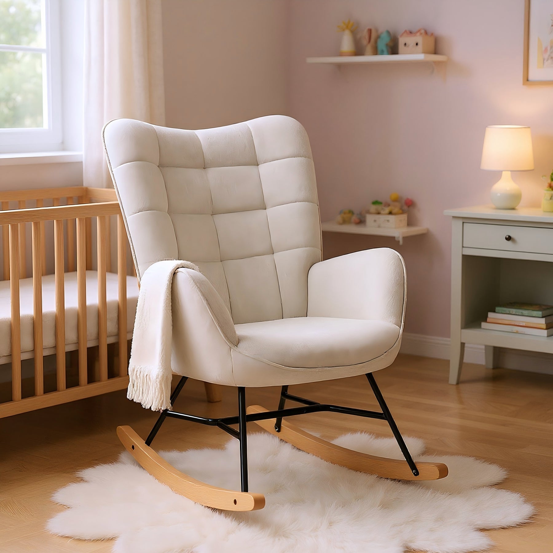 Stable Rocking Function: Built with a sturdy base combining beech wood and metal, ensuring a smooth, safe, and relaxing rocking motion.