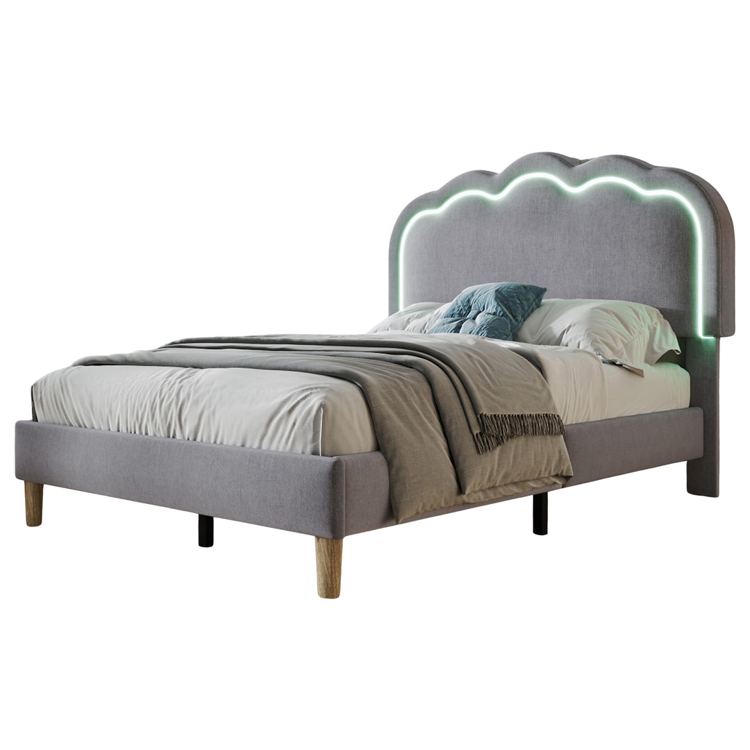 Grey Linen upholstered double divan bed frame with USB charging QEGMIX DOUBLE GREY UK
