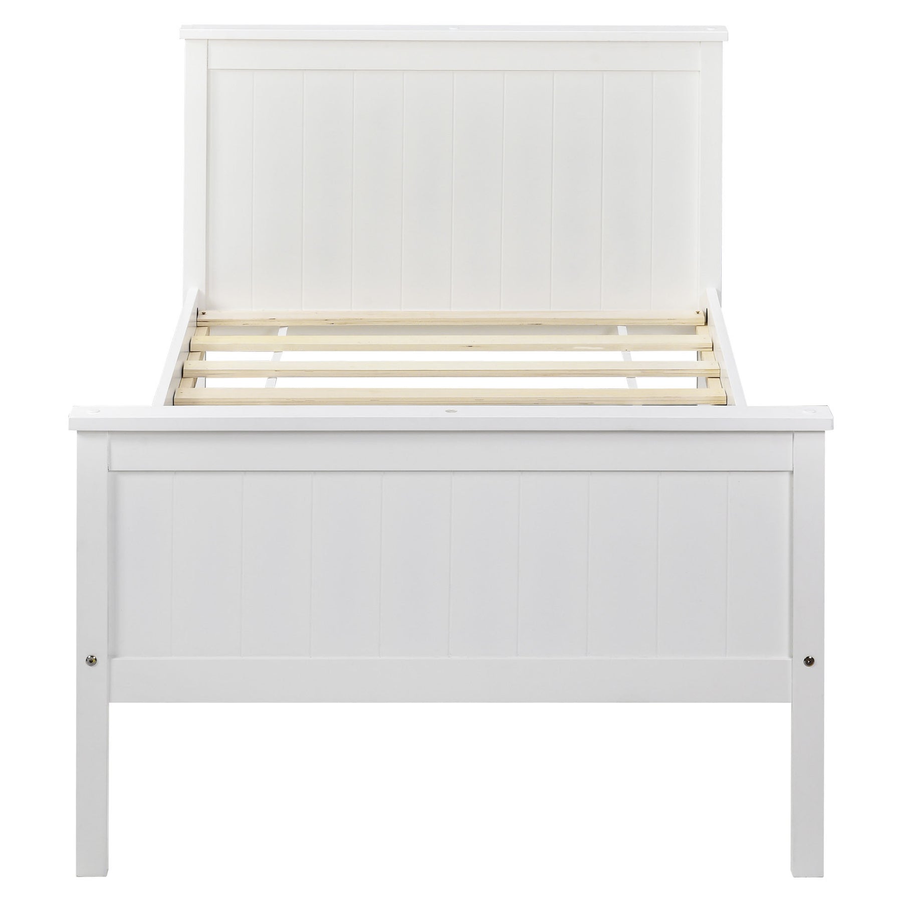 White pin wood single bed frame with slatted Headboard & Footboard, Ivory 90X190cm HOHLON SINGLE UK