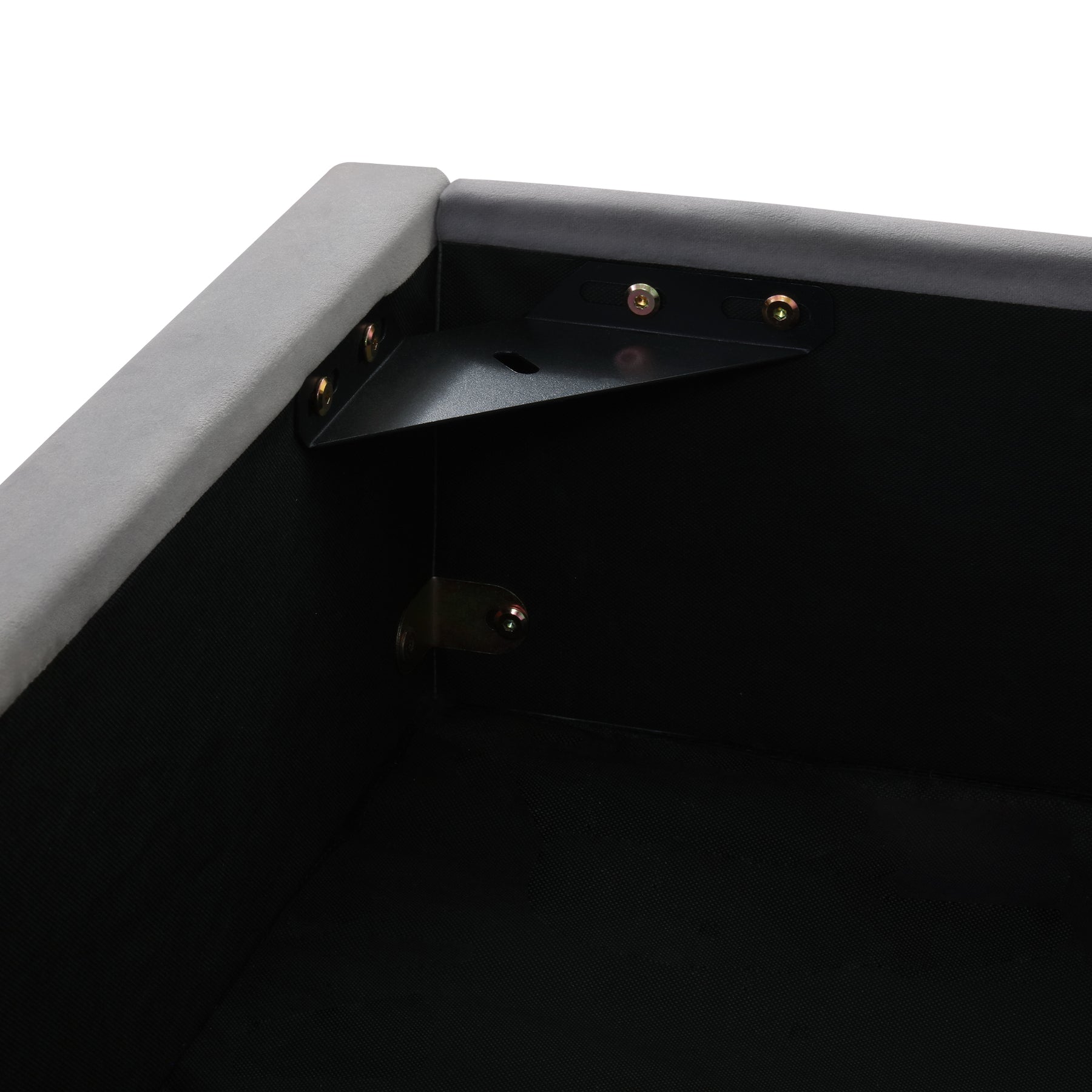 Grey velvet king size ottoman bed end opening, side lamps and charging ports (150×200cm) RECESSIVE
