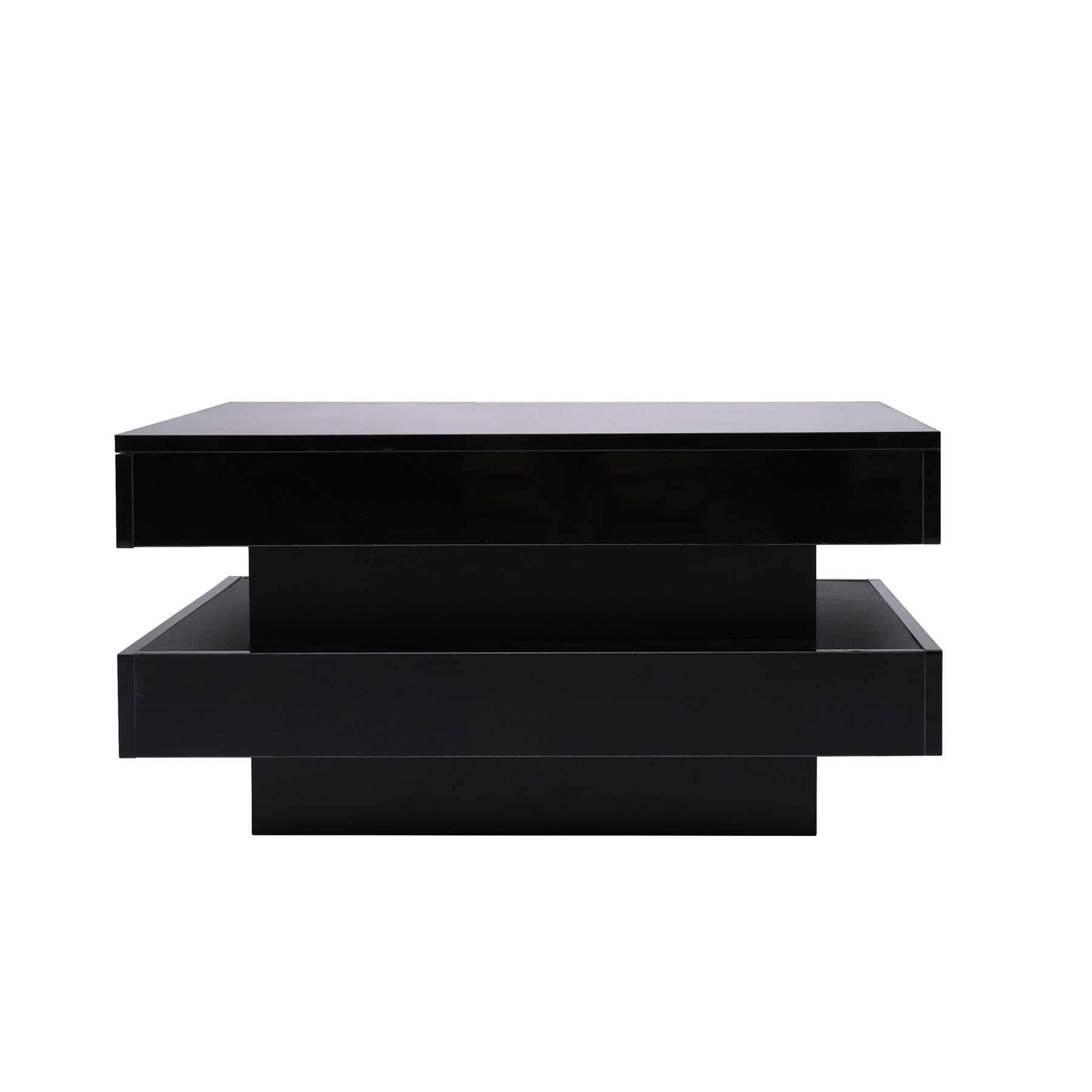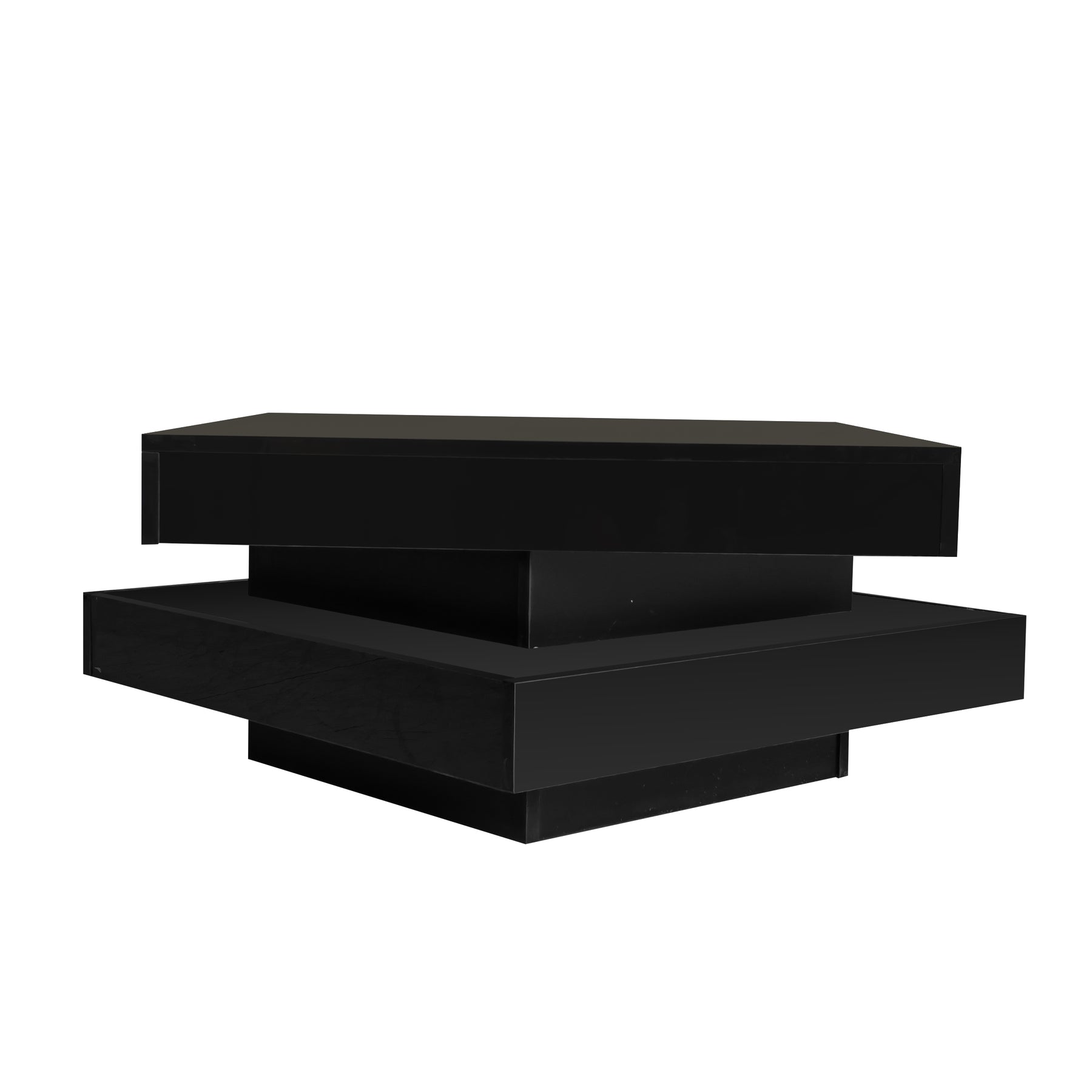 Black high gloss square coffee table with 360° rotating top LED lighting KERATINSCALE