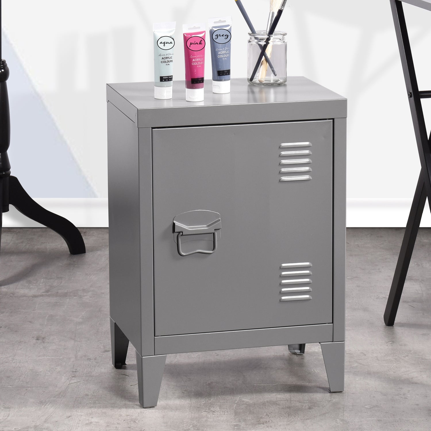 Clean, compact, and cool — this grey metal cabinet offers a stylish take on industrial storage. Whether you're organizing your bedroom, entryway, or office, this locker-style unit brings both personality and practicality to your space.