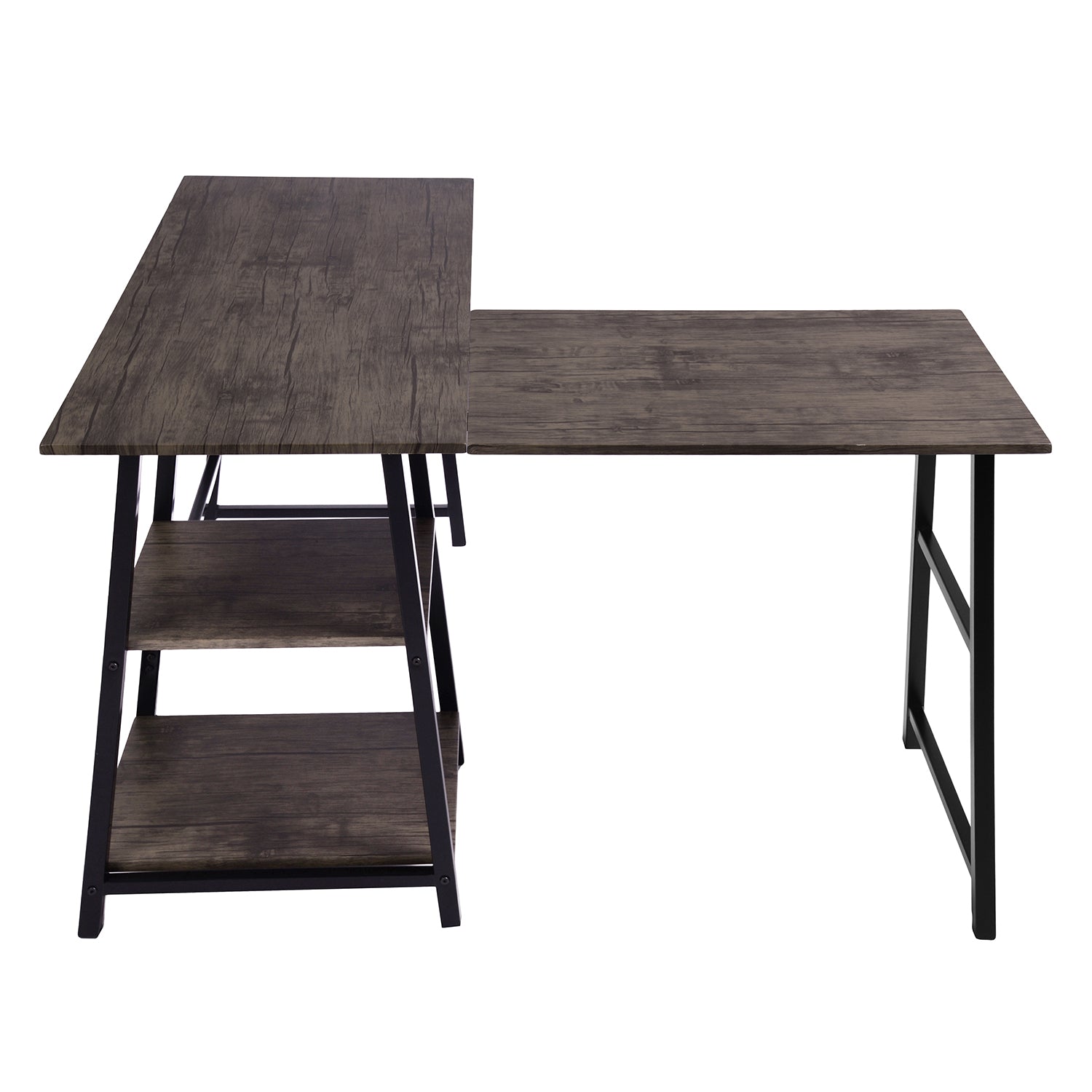 Its right-angled design gives you two large trays, as well as two shelves under the corner of the desk, allowing you to have a tidy and organized workspace.