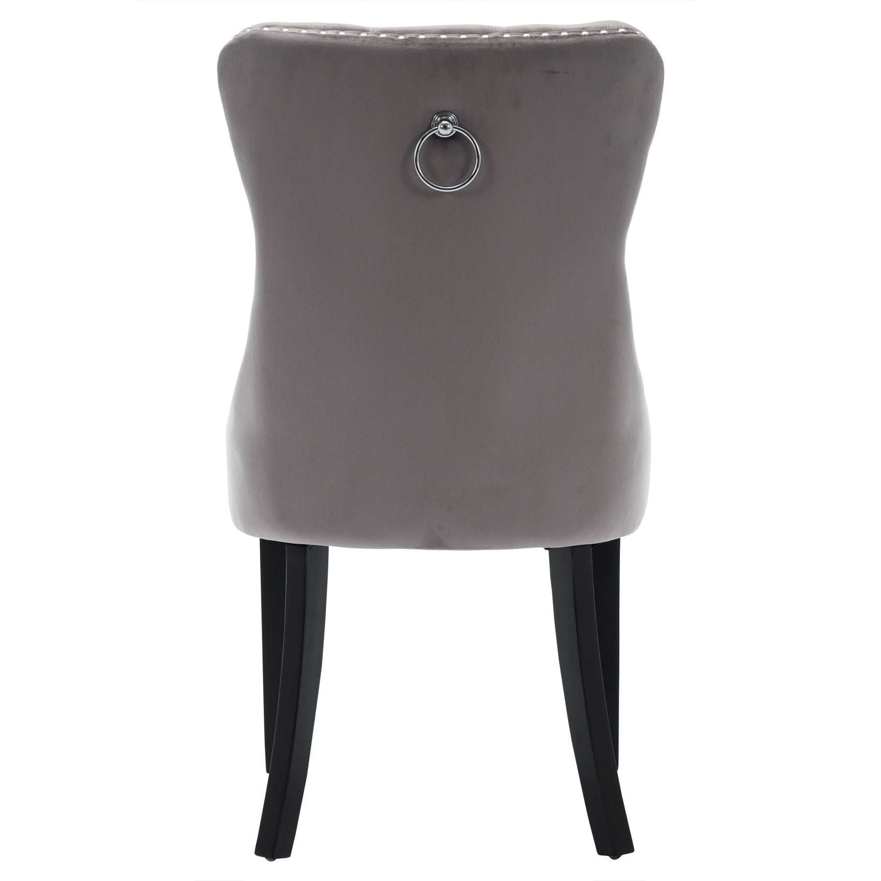 Set of 4 dining chairs velvet grey tufted with solid wood legs, nailheads and back chrome ring NOBLEE