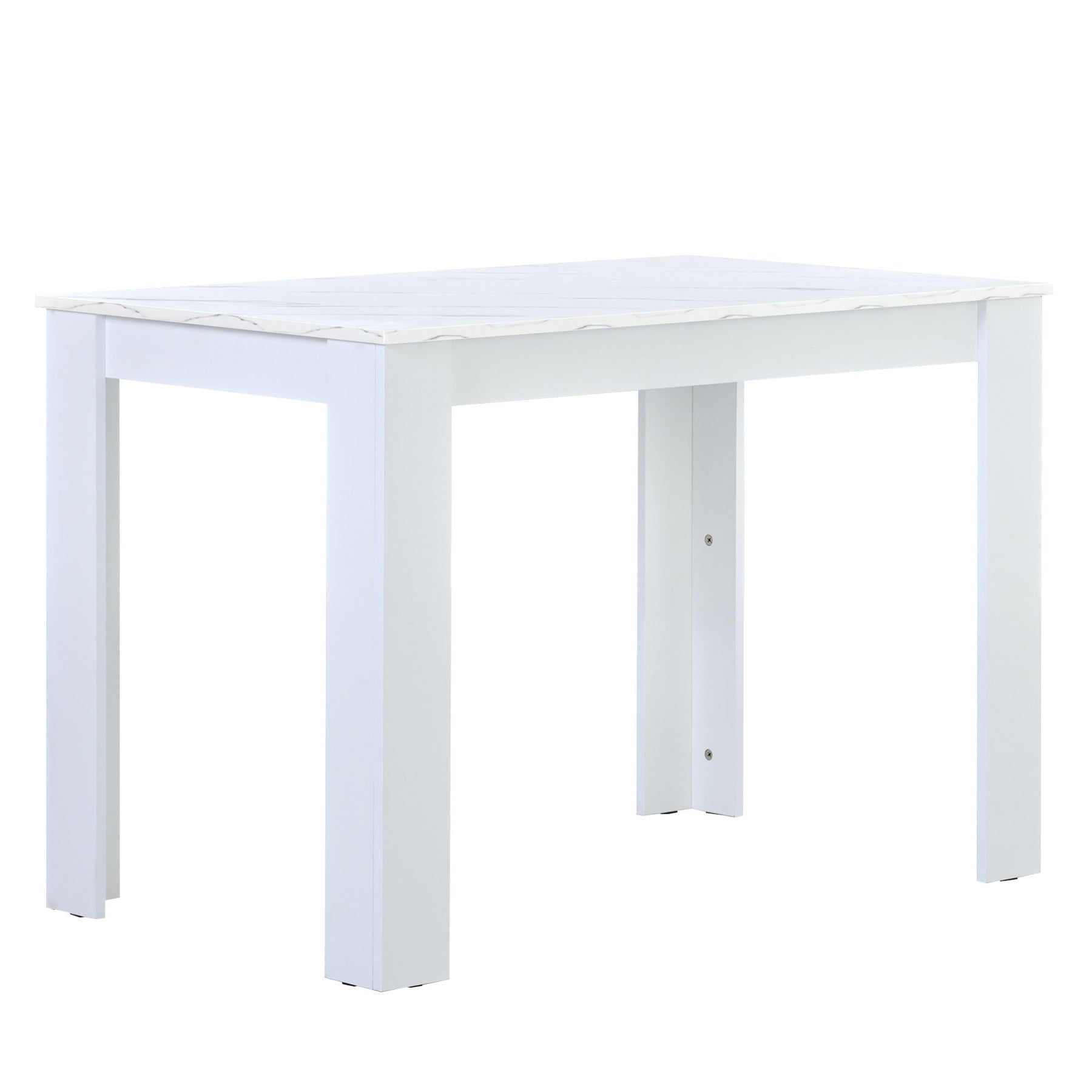 This elegant 3-piece dining set, featuring one table and two matching benches, is perfectly designed for smaller kitchens, dining rooms, or apartment living. The set boasts a beautiful white artificial marble finish on the tabletop and a clean white frame, instantly adding a stylish, contemporary, and upscale feel to your space. Expertly constructed from premium E1 MDF, the set offers exceptional stability and a compact, space-saving design that doesn't compromise on reliable seating or timeless style.