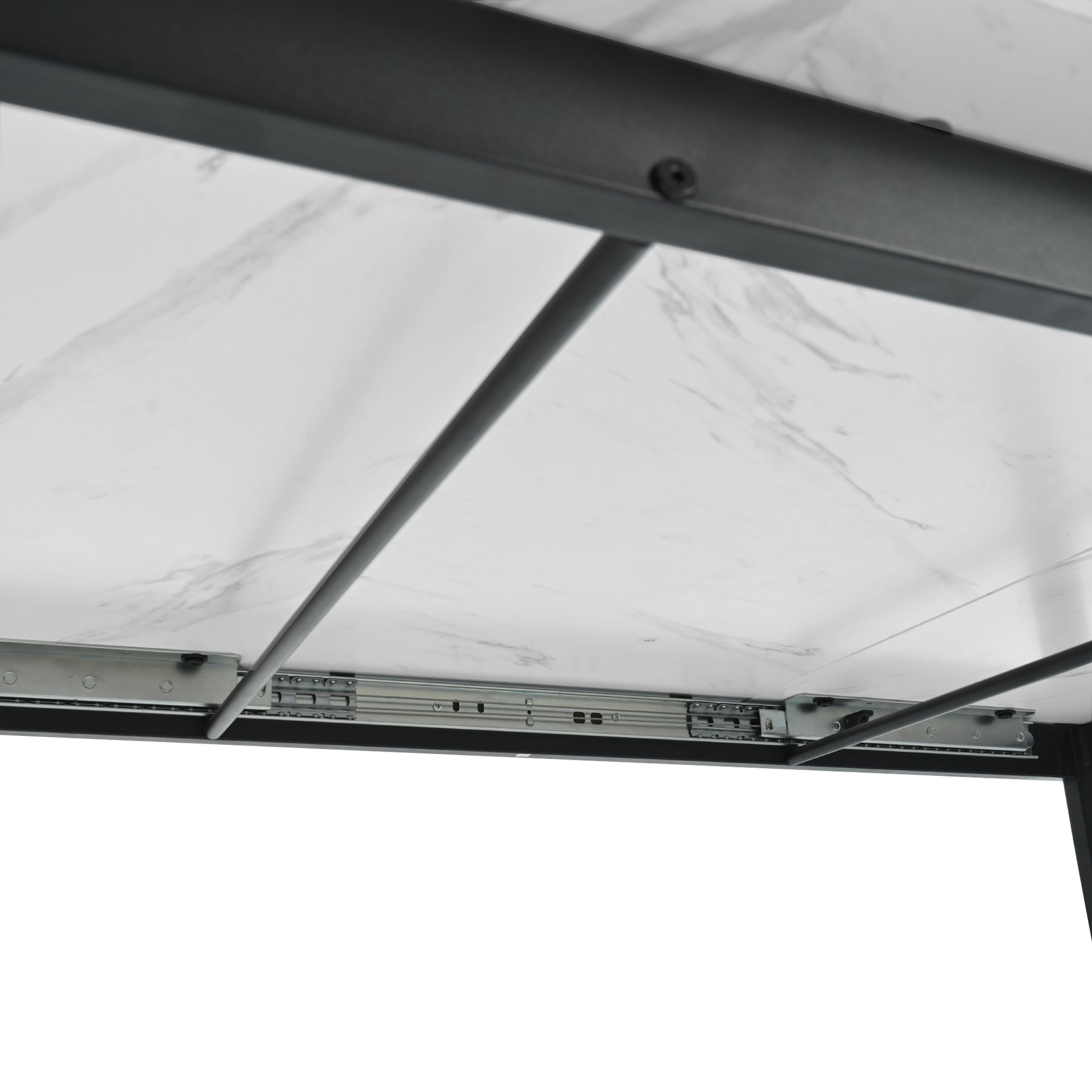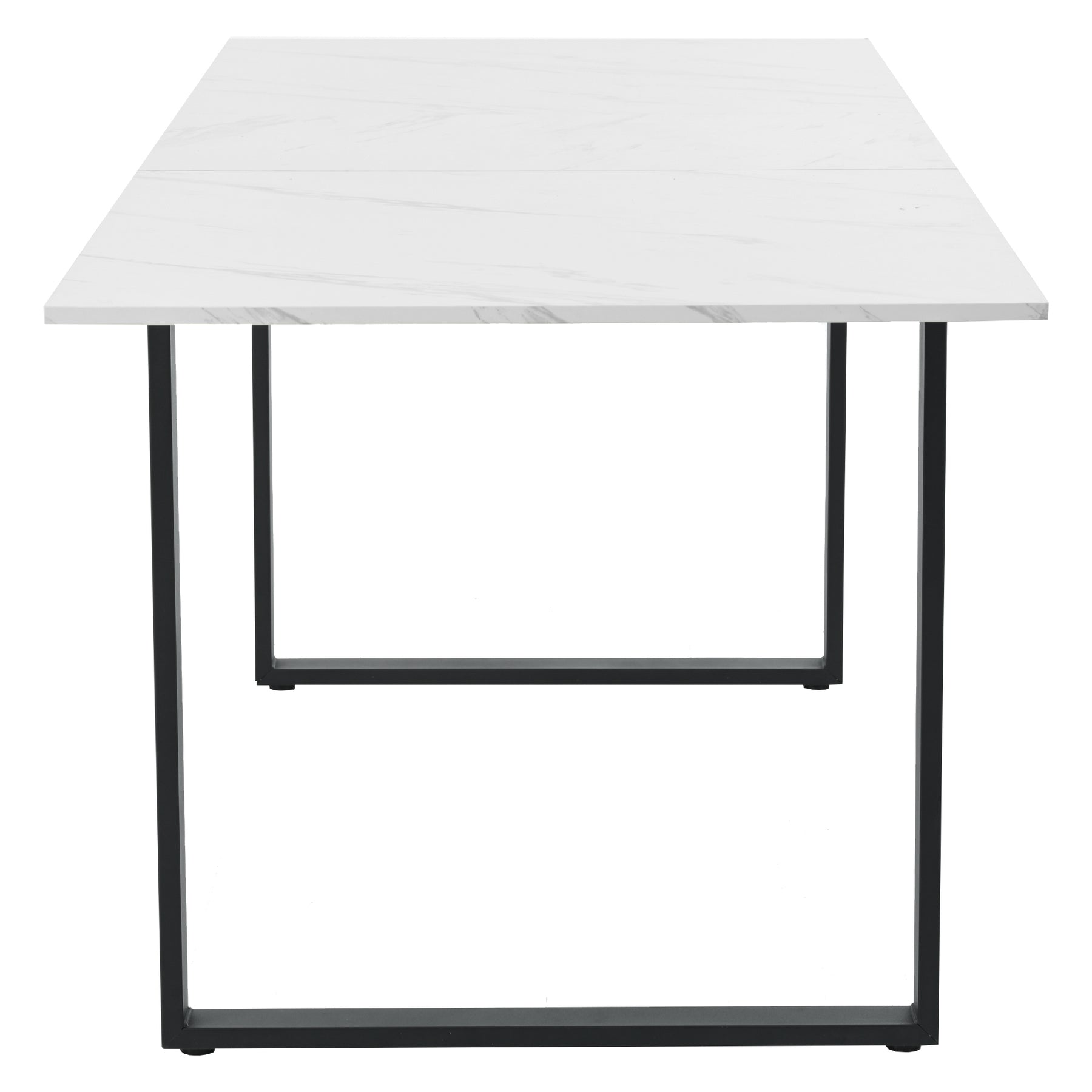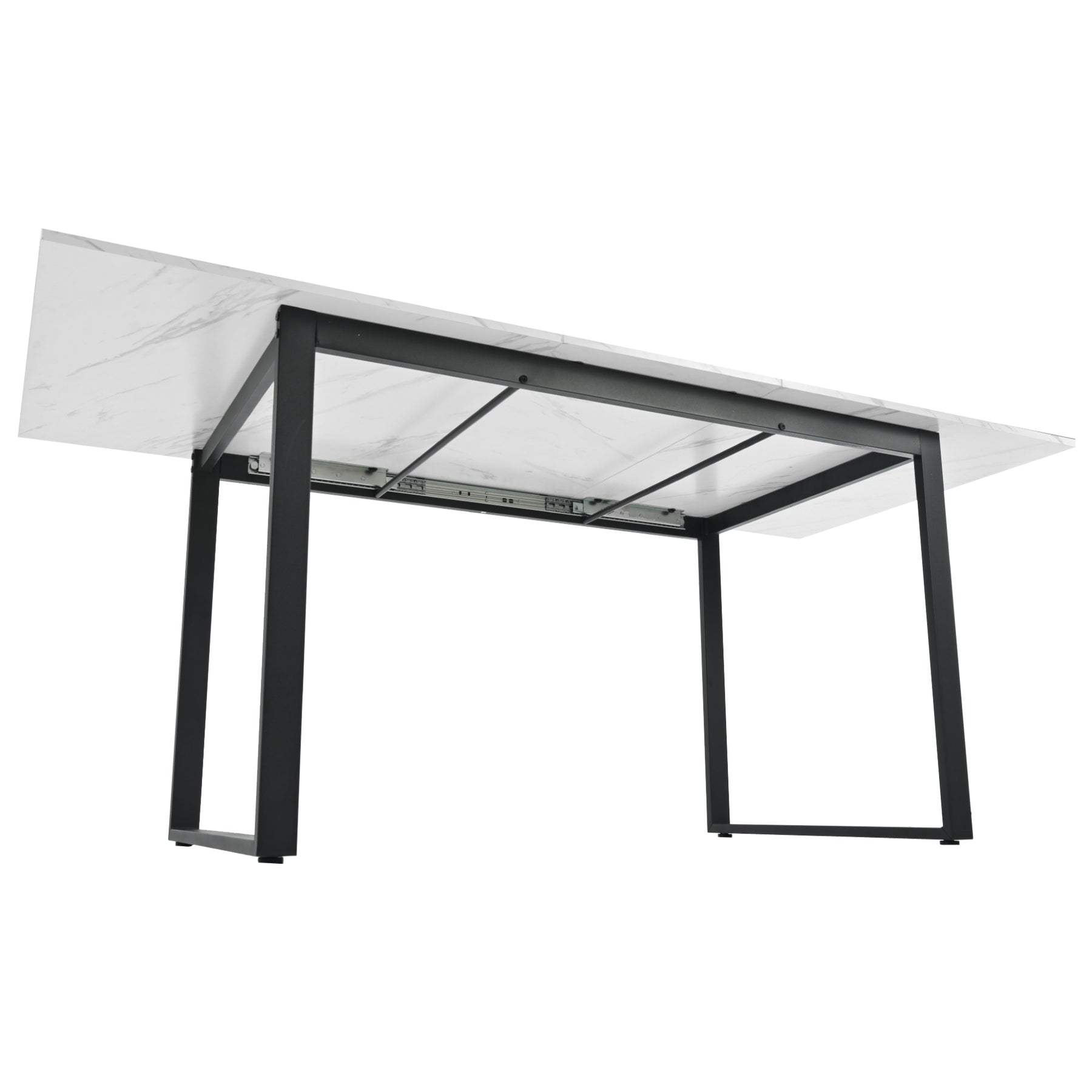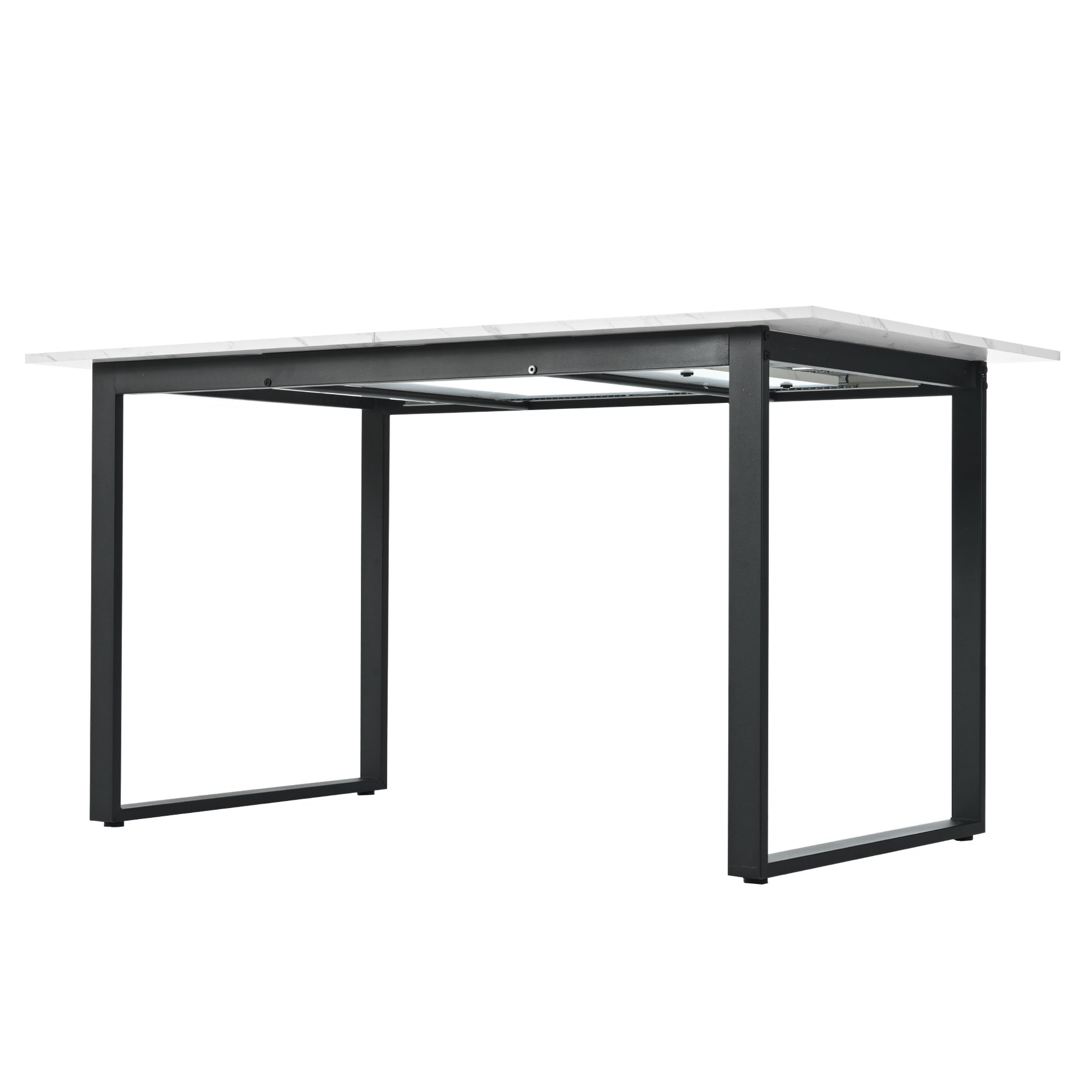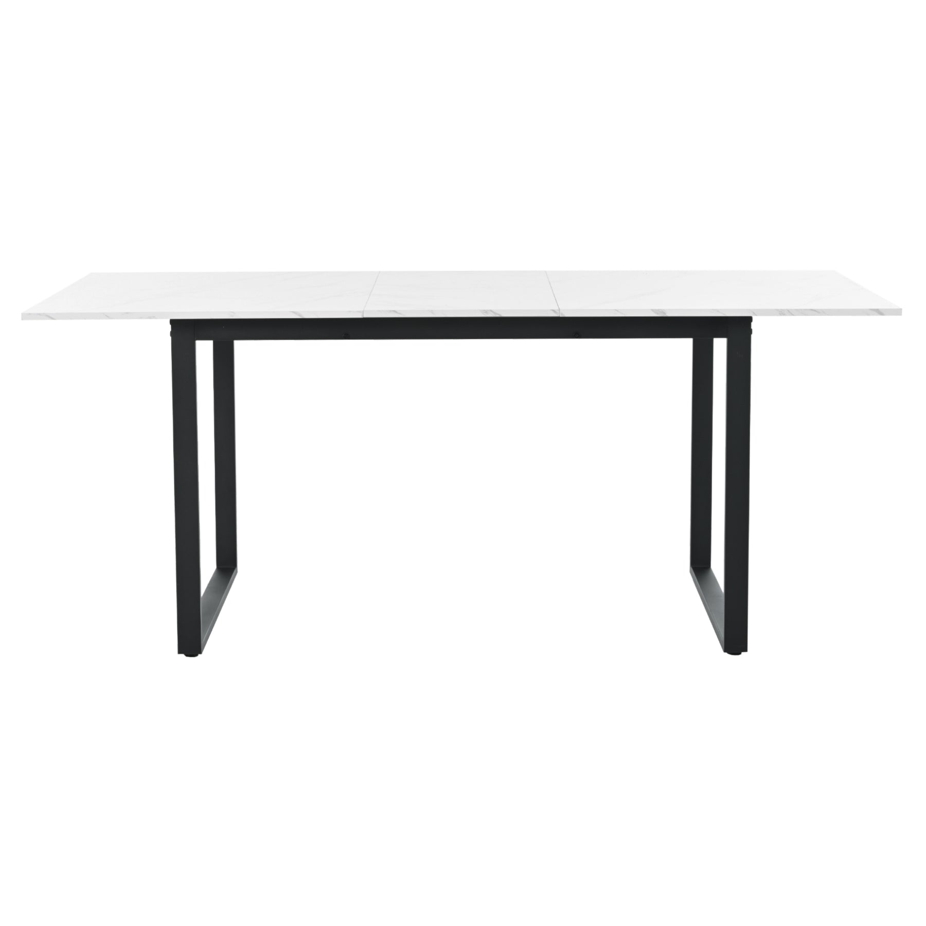 White extendable faux marble dining table with black metal leg 140-180cm FERNHAVEN UK