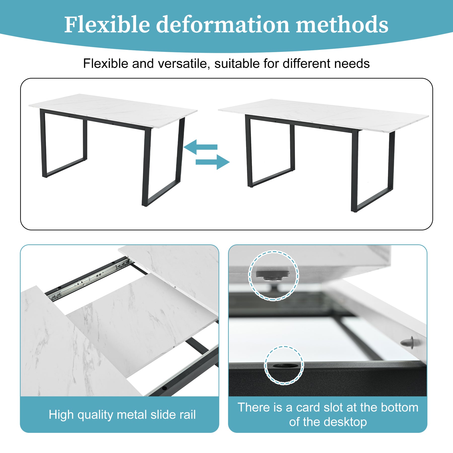 Dual Use for Home and Office: With its clean lines and practical design, this table is perfect for dual use. It can serve as a stylish dining table for family meals or a spacious and stable desk for your home office.