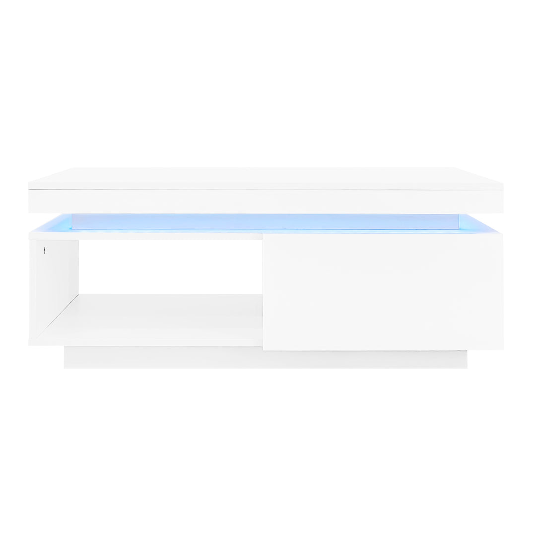 White high gloss coffee table with LED lights and storage 100 x 50 x 40 cm MAGNETOTAIL UK