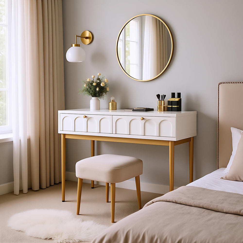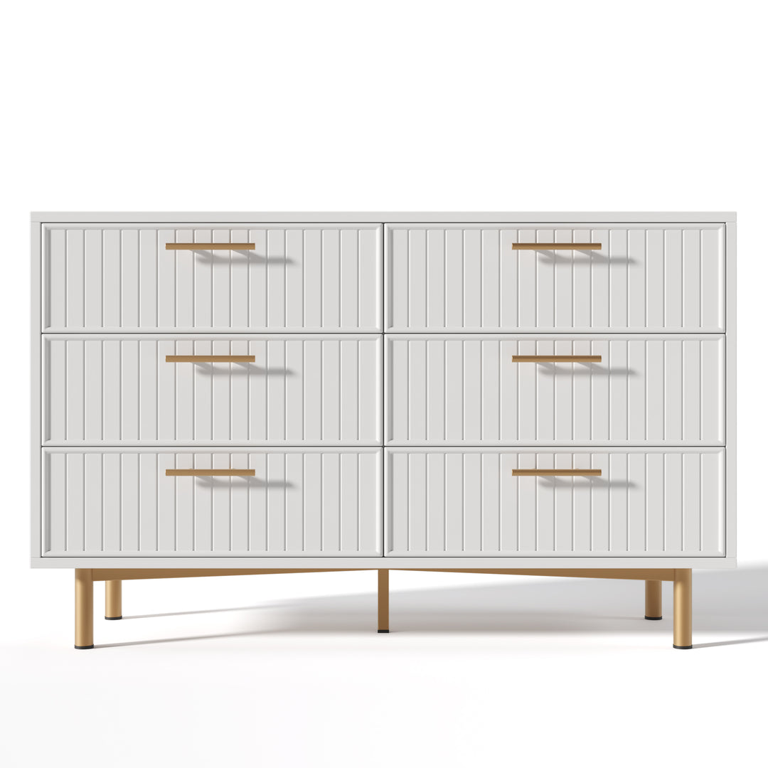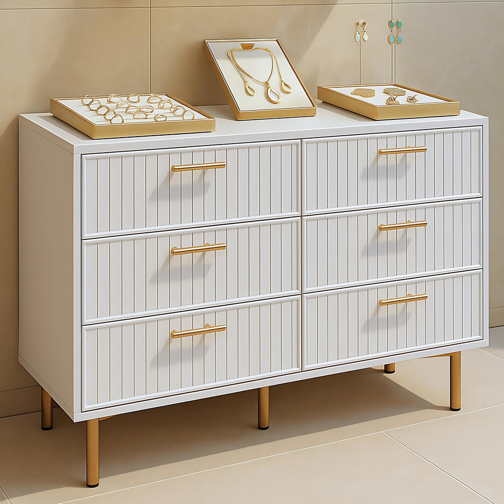 Modern white sideboard 6 drawers golden handles legs 40Dx120Wx75Hcm OGAEN UK