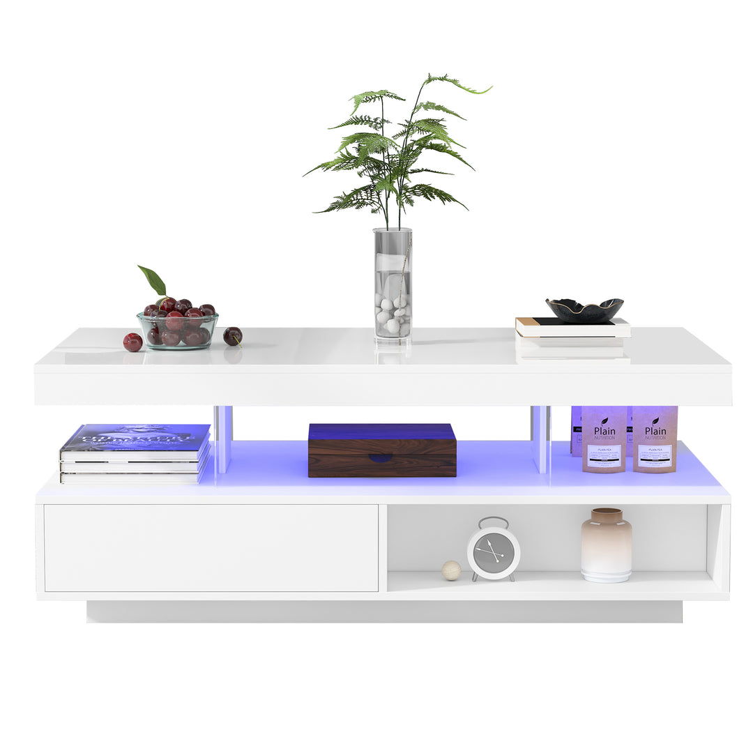 White high-gloss sideboard 2 doors and 3 drawers with LED light 115x110x39cm MIMMU UK