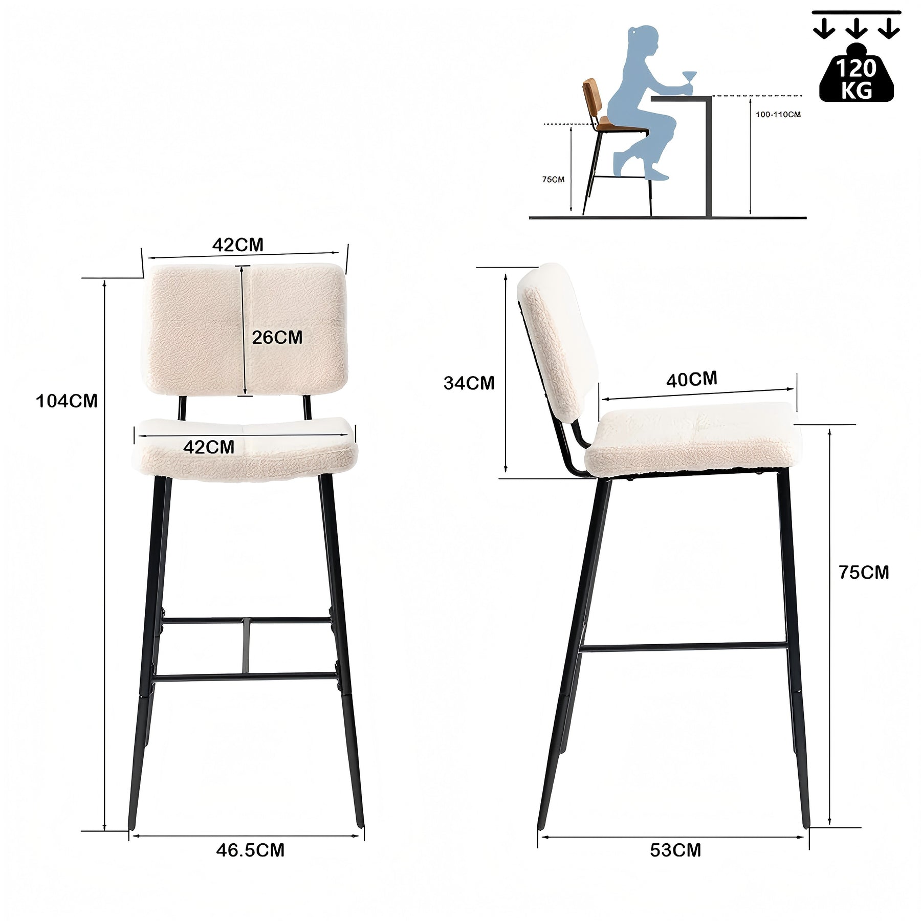 Add a touch of elegance and comfort to your bar, kitchen, or café with these retro and Scandinavian design bar stools. Featuring a soft beige sheepskin fabric and sturdy black metal legs, these versatile stools are perfect for relaxing or enjoying meals. Their ergonomic design ensures a comfortable seating experience, making them a stylish and functional addition to any space.