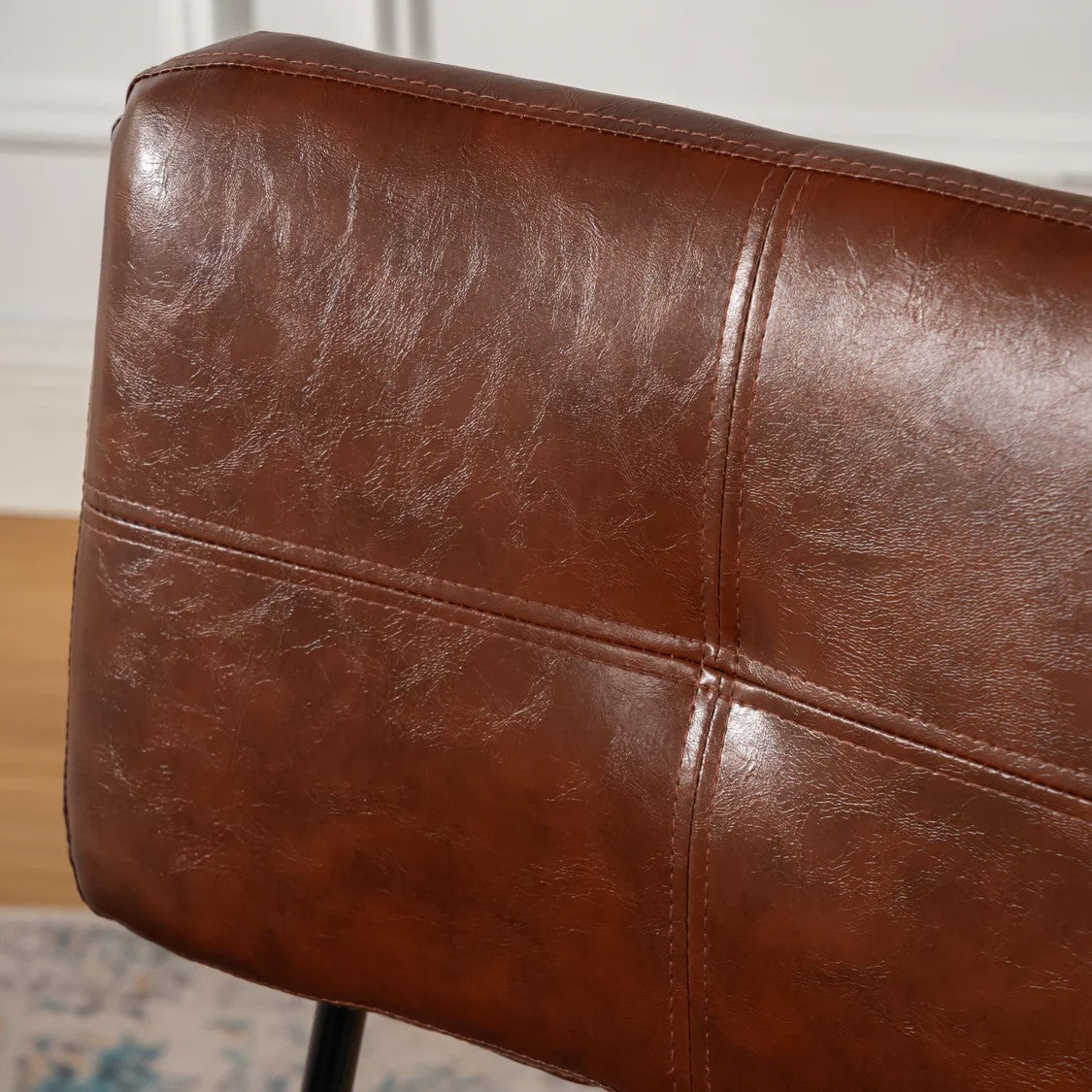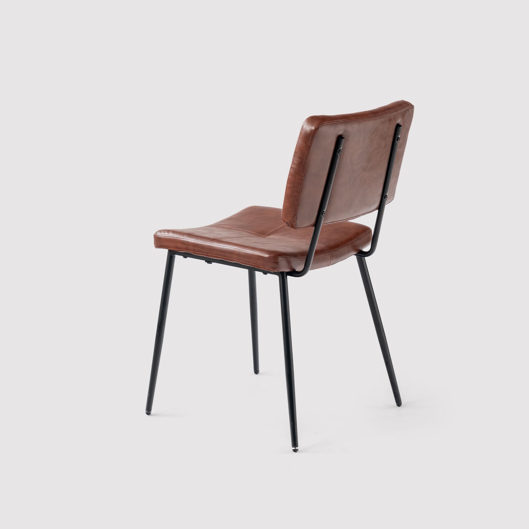 Elevate your interior with this elegant set of four industrial-style dining chairs, designed to bring both comfort and sophisticated charm to any space. Featuring a rich brown oiled leather upholstery with a durable PVC finish and sleek black metal legs, these chairs effortlessly blend robust aesthetics with versatile comfort. Perfect for your kitchen, living room, or office, they adapt beautifully to various moments, from lively meals to quiet relaxation.
