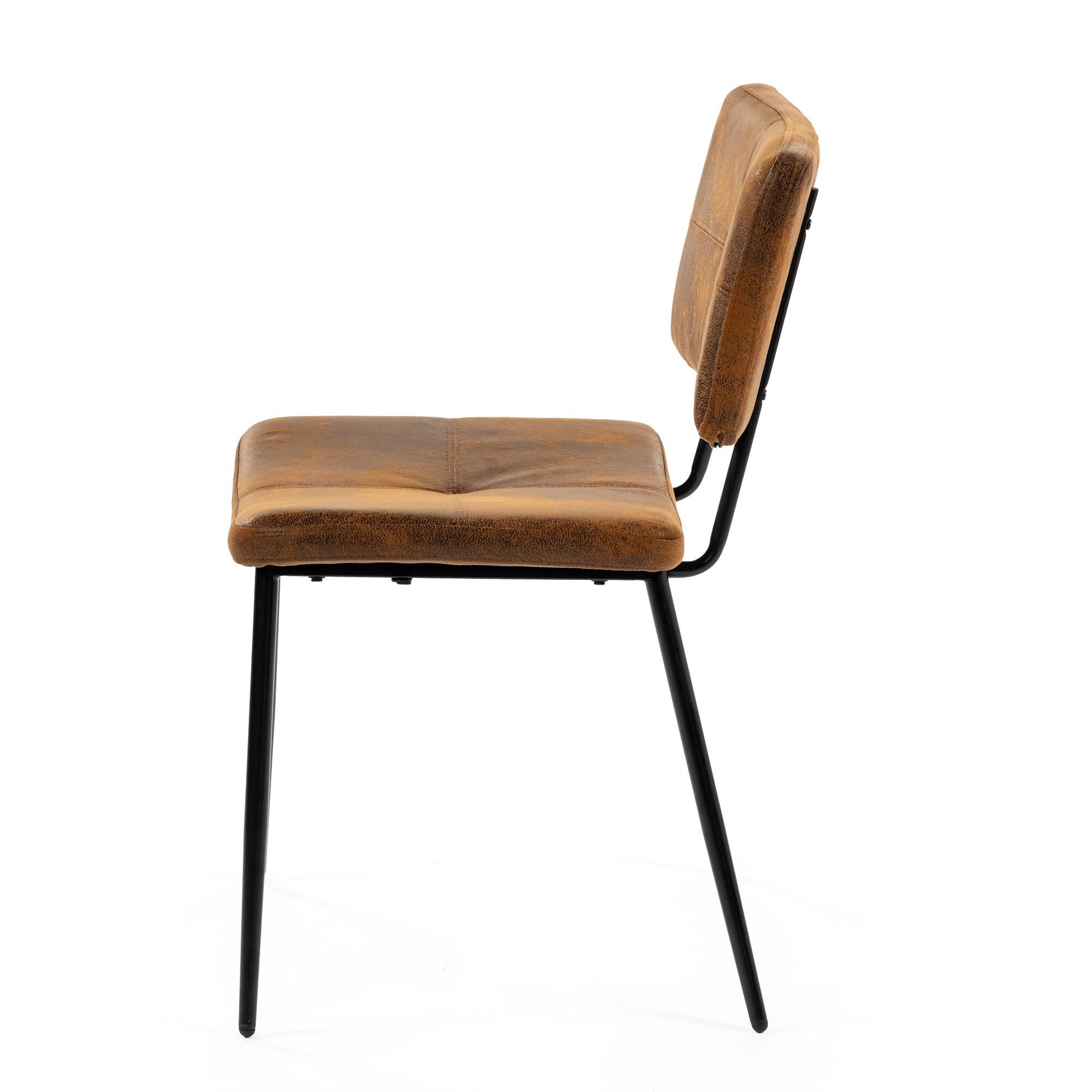 Add a touch of elegant industrial style to any room with this versatile and comfortable set of four chairs. Perfect for your kitchen, living room, or office, these chairs feature a plush suede fabric and sturdy black metal legs. Designed to adapt to all your moments, from casual meals to relaxed gatherings, they are a charming and functional addition to your home.