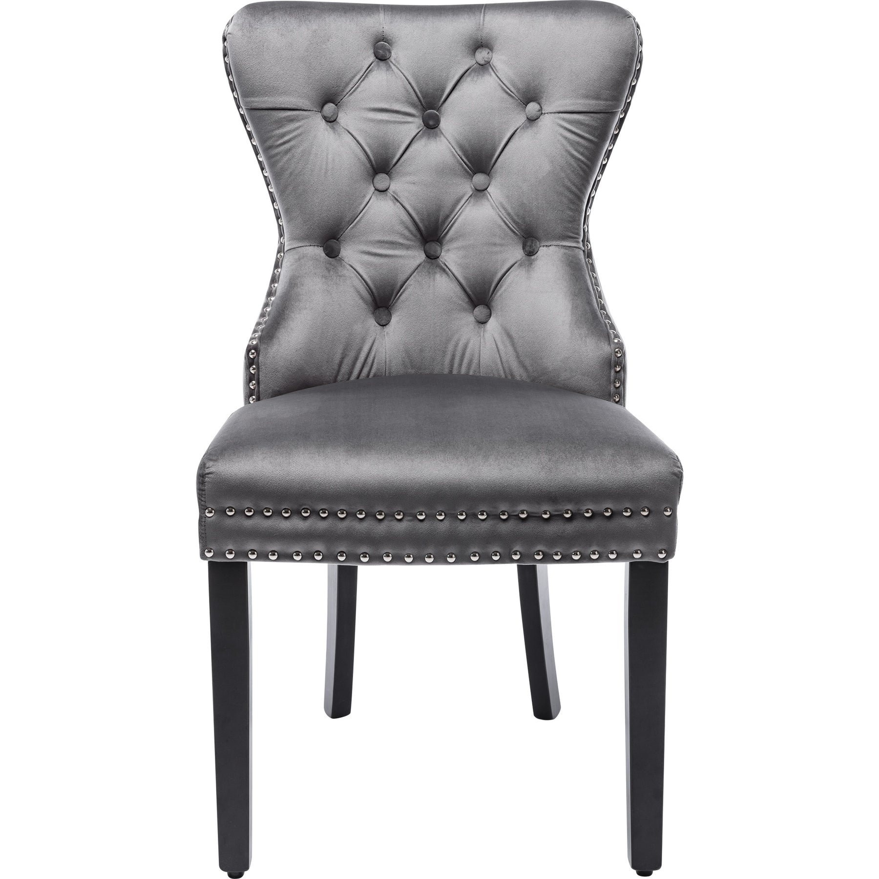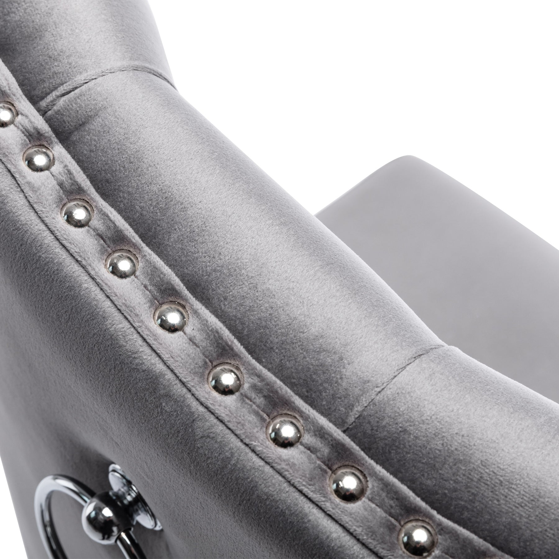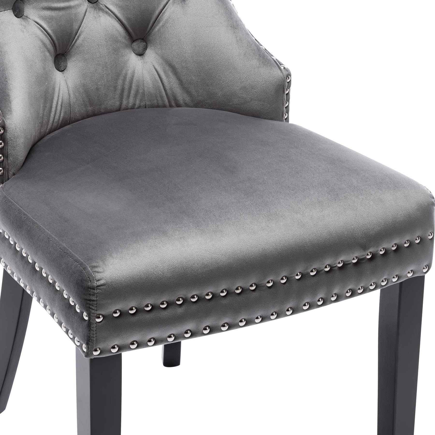 Bring timeless elegance and superior comfort to your dining or living space with this 6-piece velvet dining chair set. Upholstered in soft, stain-resistant velvet, each chair combines classic craftsmanship with modern sophistication. The tufted backrest, chrome ring handle, and nailhead trim add refined details, while the solid oak legs ensure strength and stability. Perfect for the dining room, bedroom, or leisure lounge, these chairs offer luxurious seating that complements any interior style.