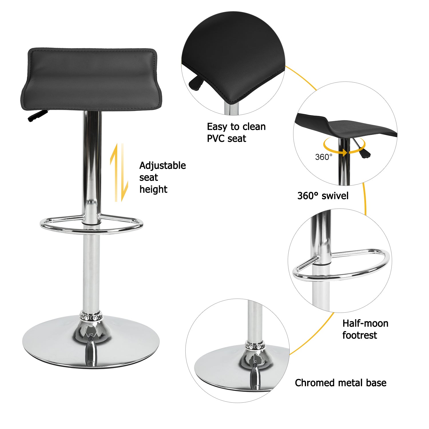 The back of the seat is slightly curved, giving you a small backrest to support your lower back. In addition, they are also equipped with a circular chrome footrest to offer you better stability.