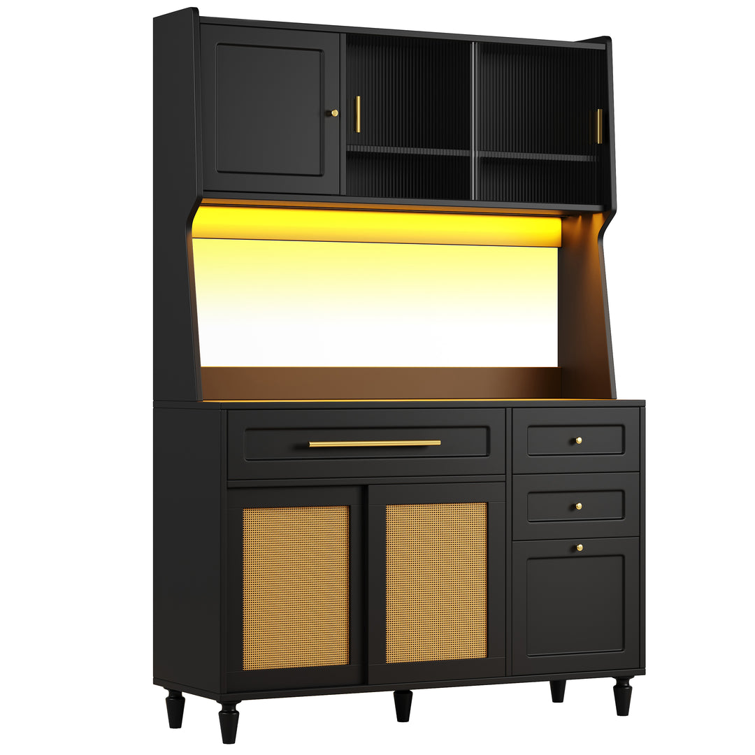 Modern black kitchen hutches buffet with rattan sliding doors, smart LED Music sync lighting VERIIS