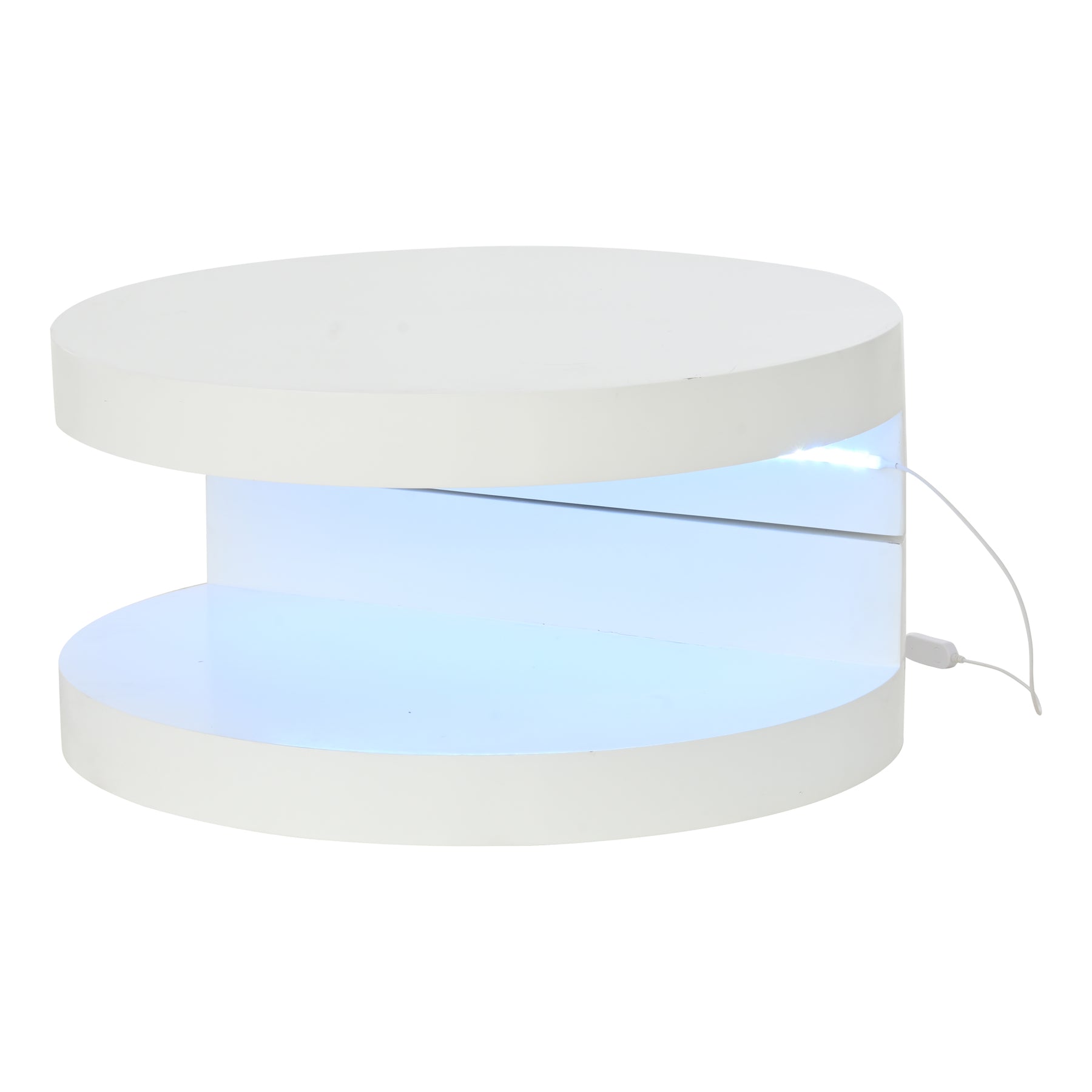 White round 360° rotating double-layer coffee table with LED lighting 70x70x35.5cm LATTICEISTRY