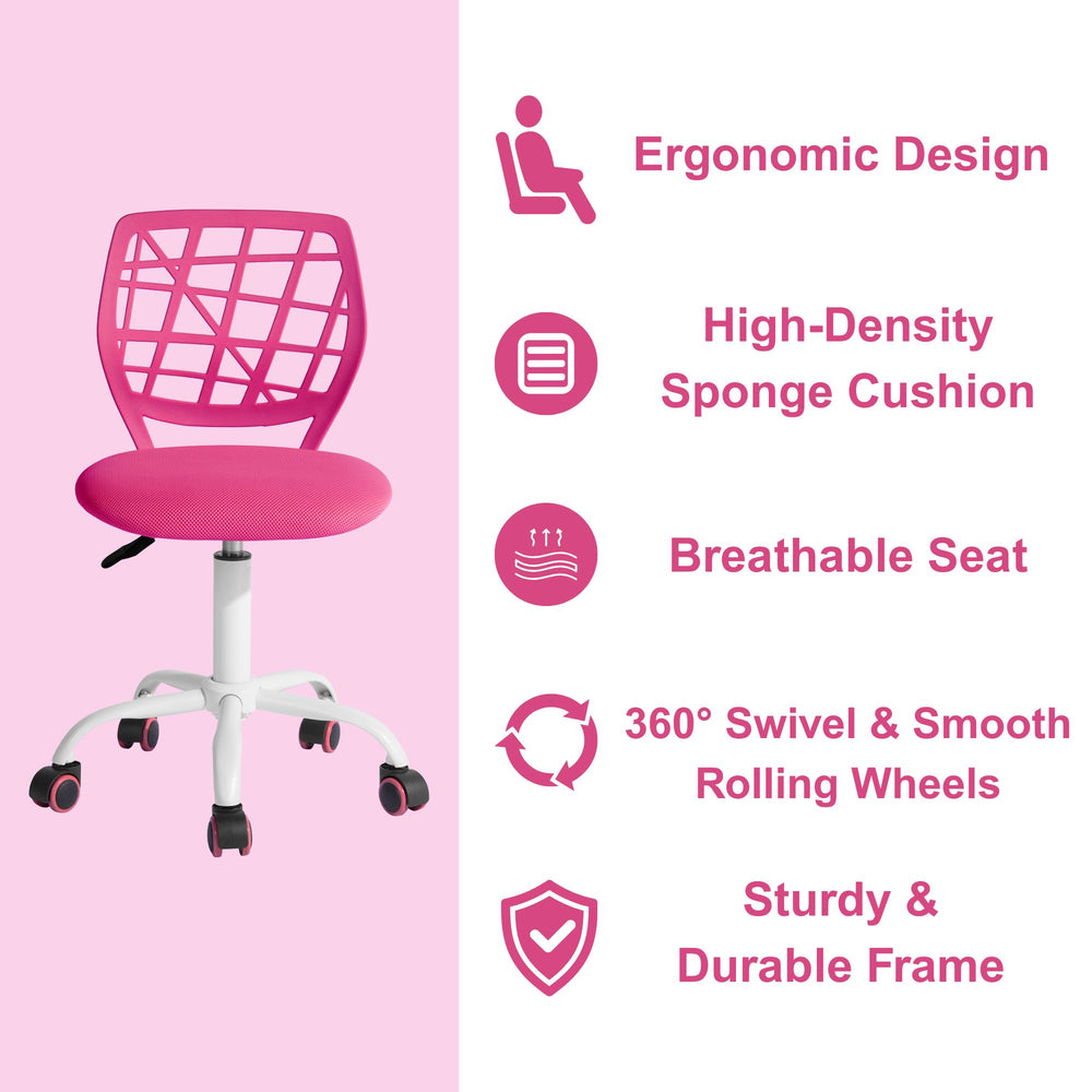 Desk Chair Adjustable Swivel Office Chair Fabric Seat Ergonomic Task Chair without Armrest CARNATION PURPLE
