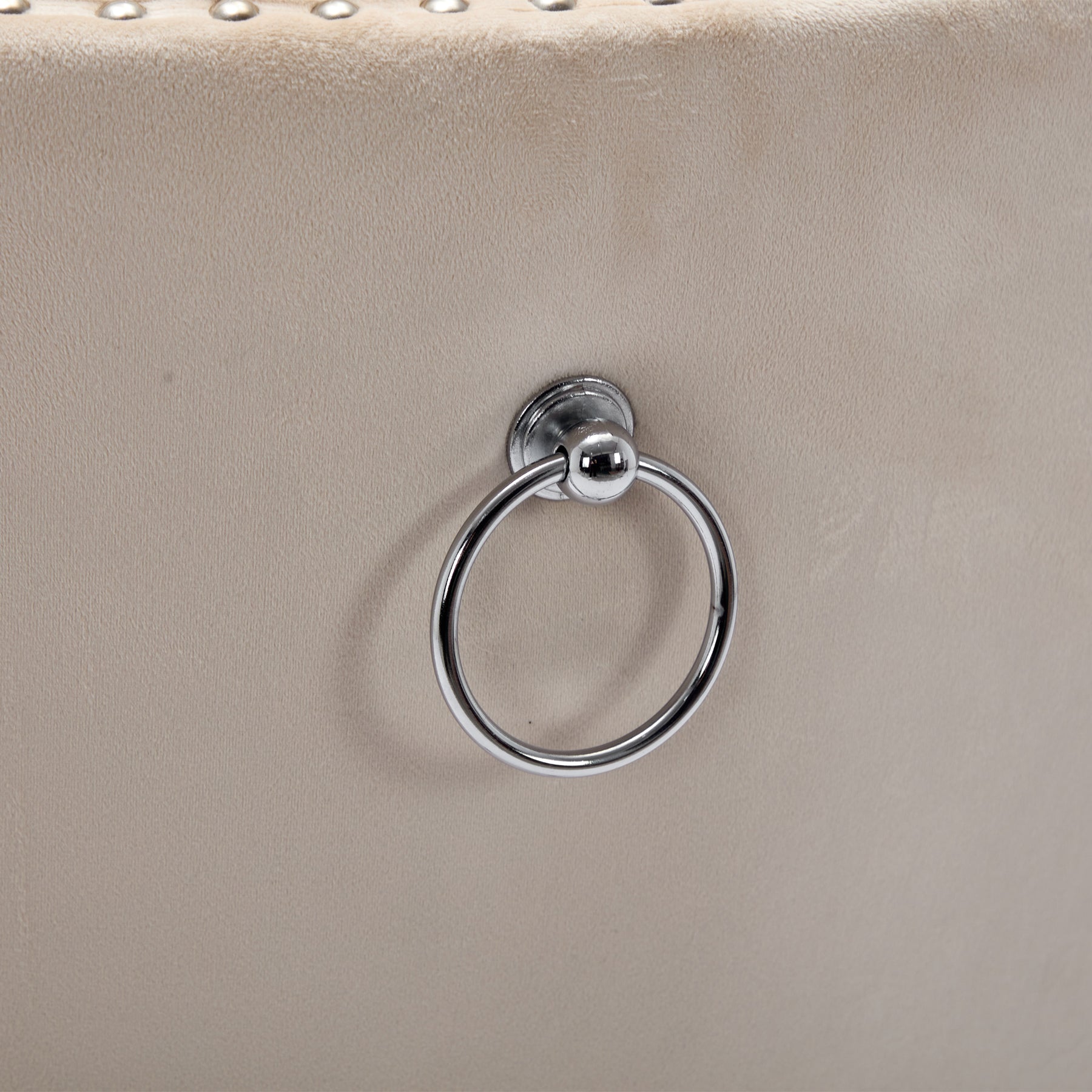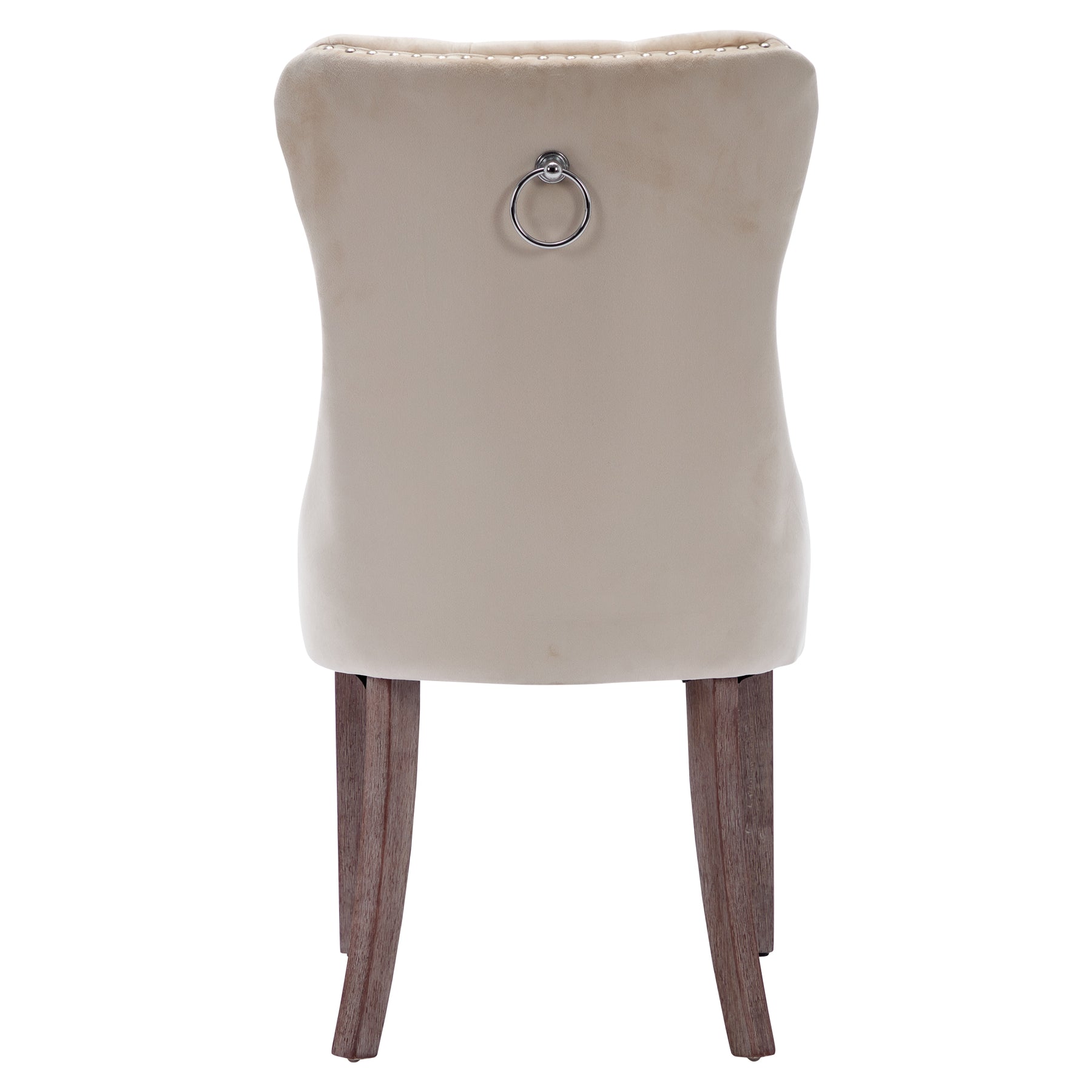 Set of 4 dining chairs velvet beige tufted with solid wood legs, nailheads and back chrome ring ELYSIUMAL
