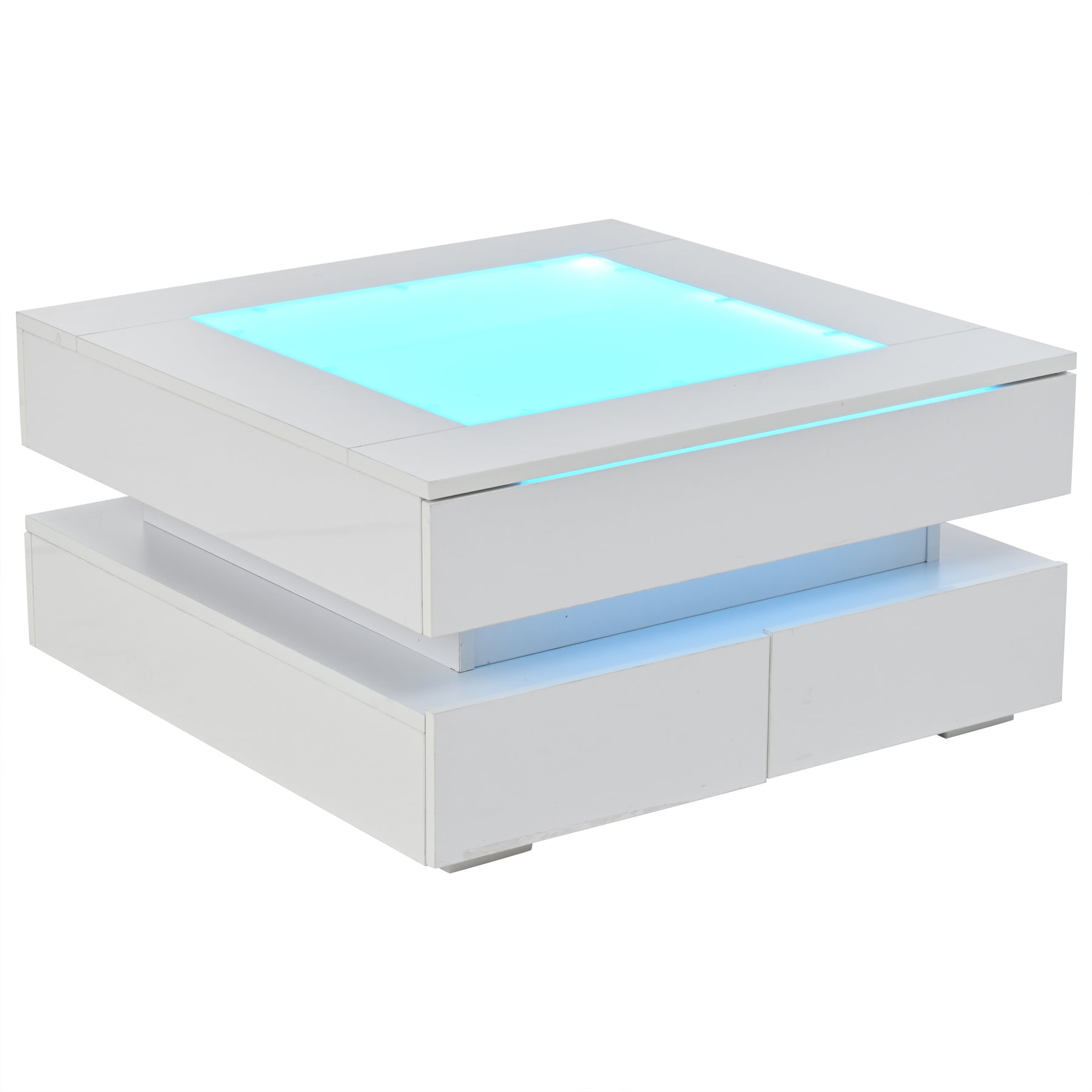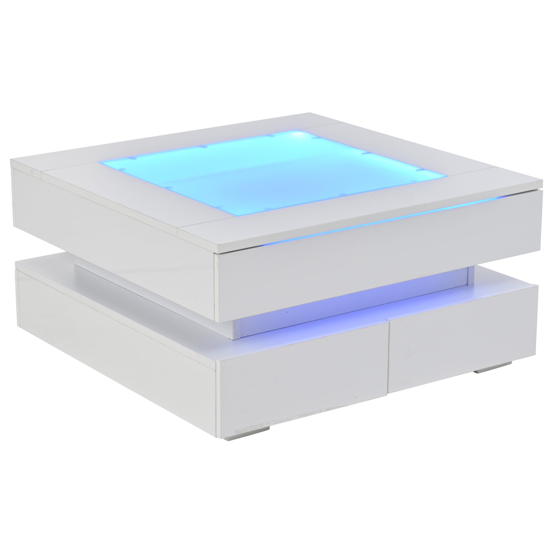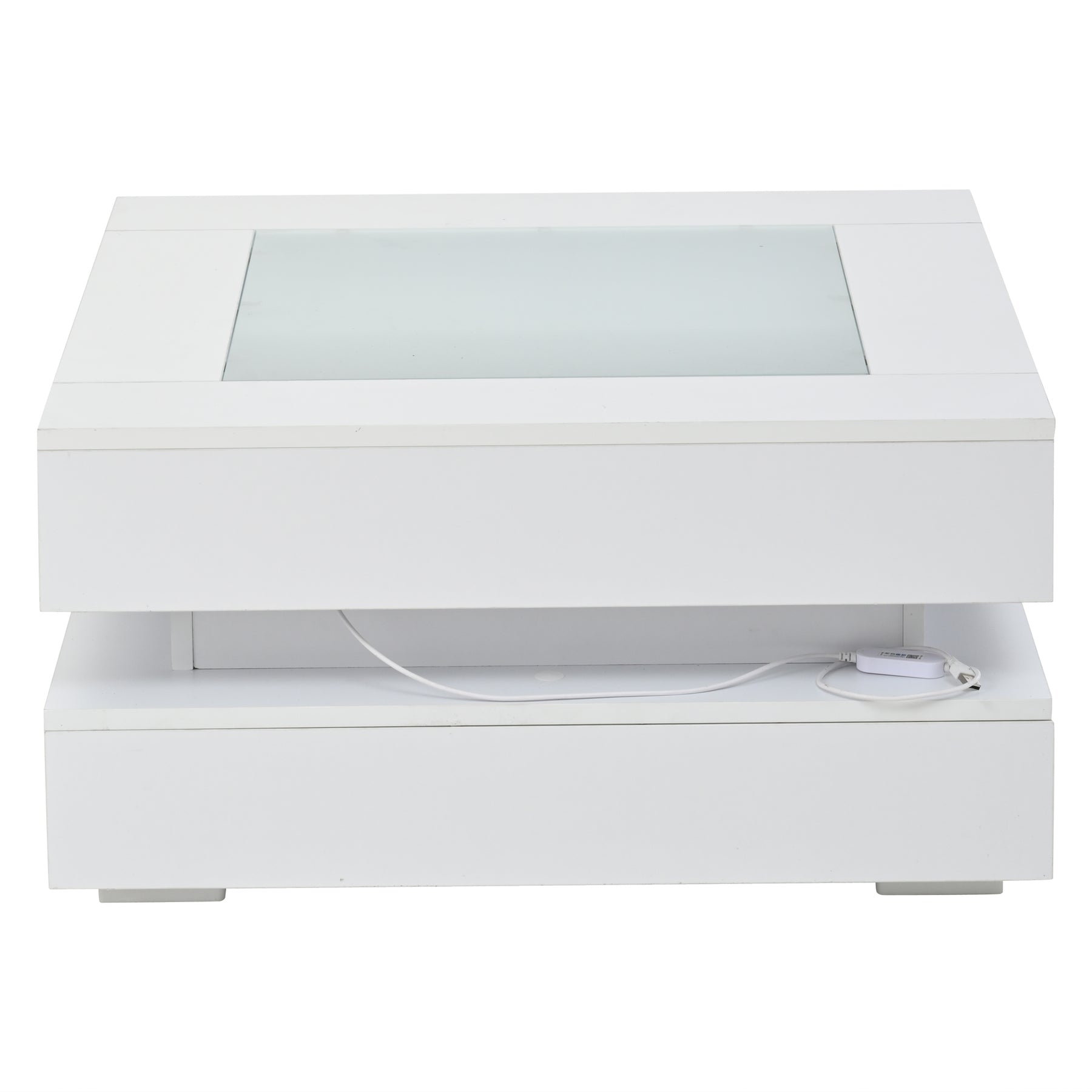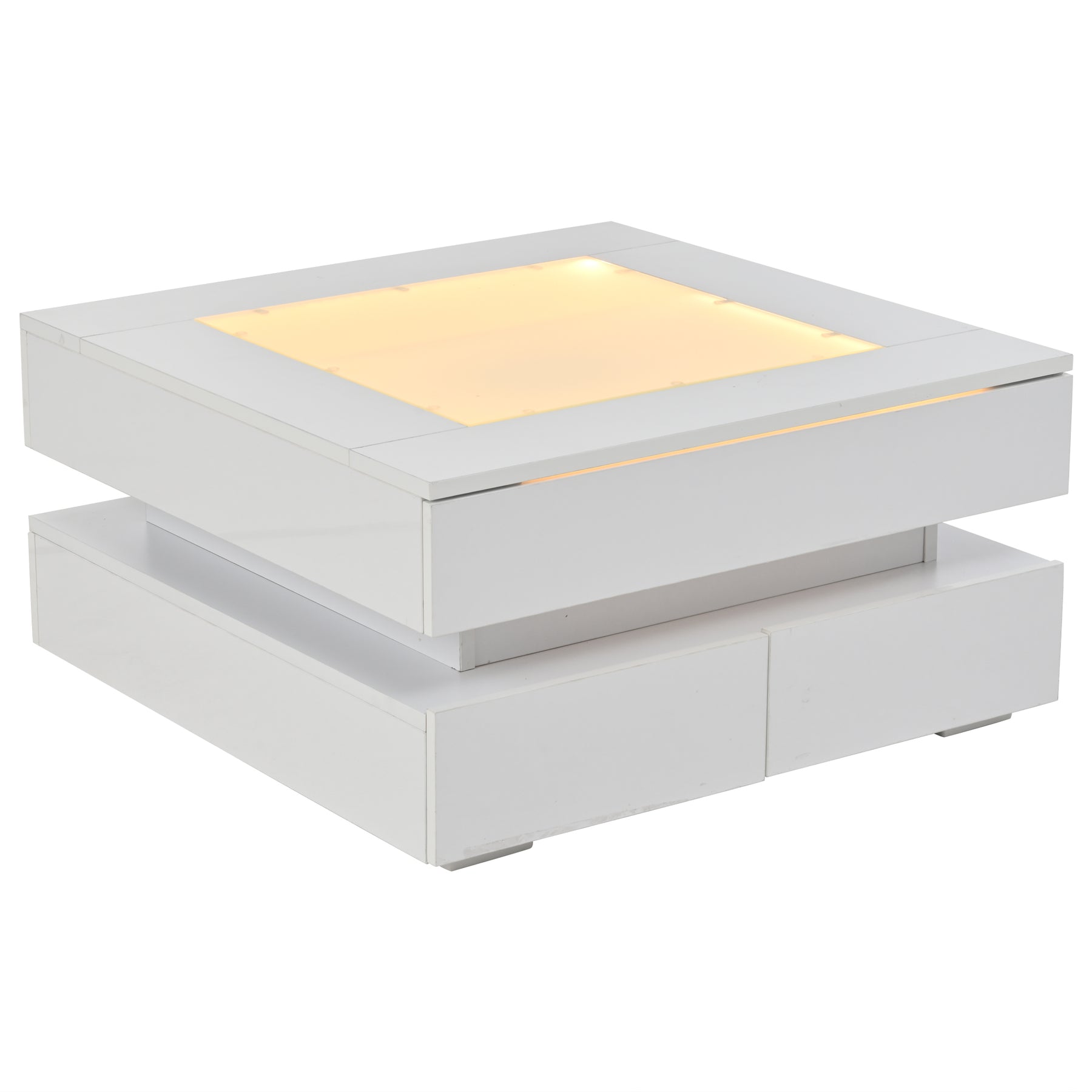 White high gloss coffee table with LED lighting 70x70x35cm SCULPTEN