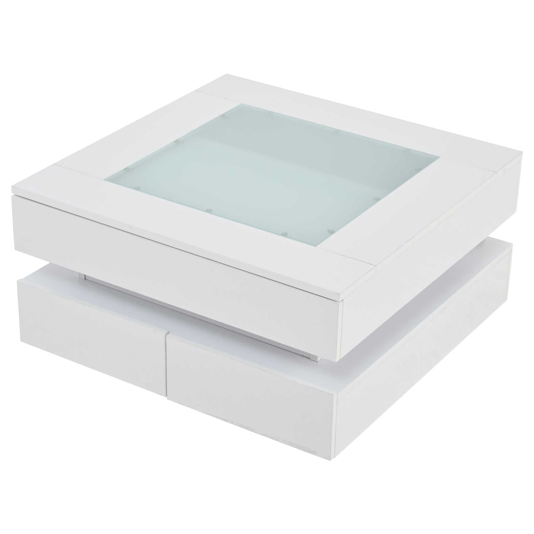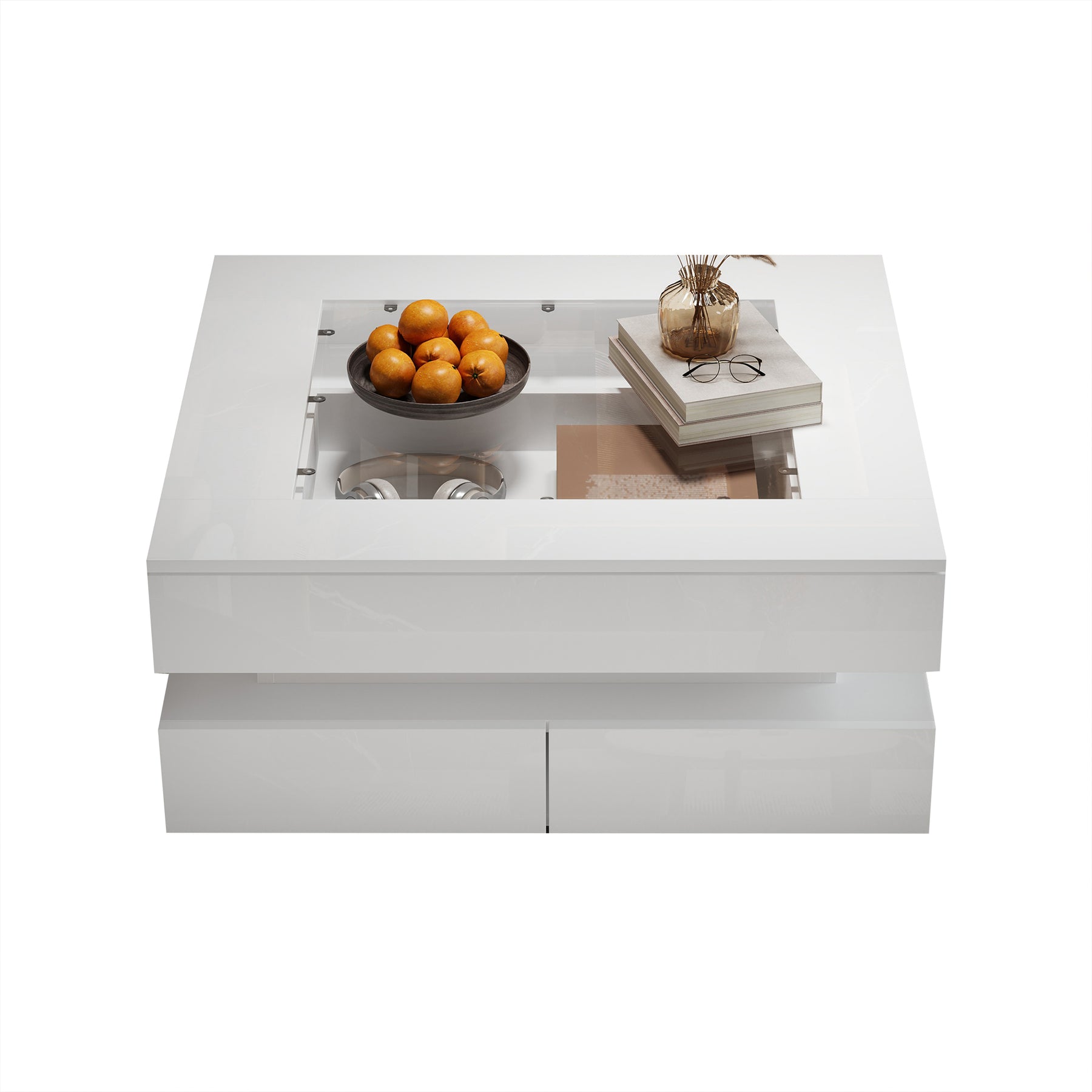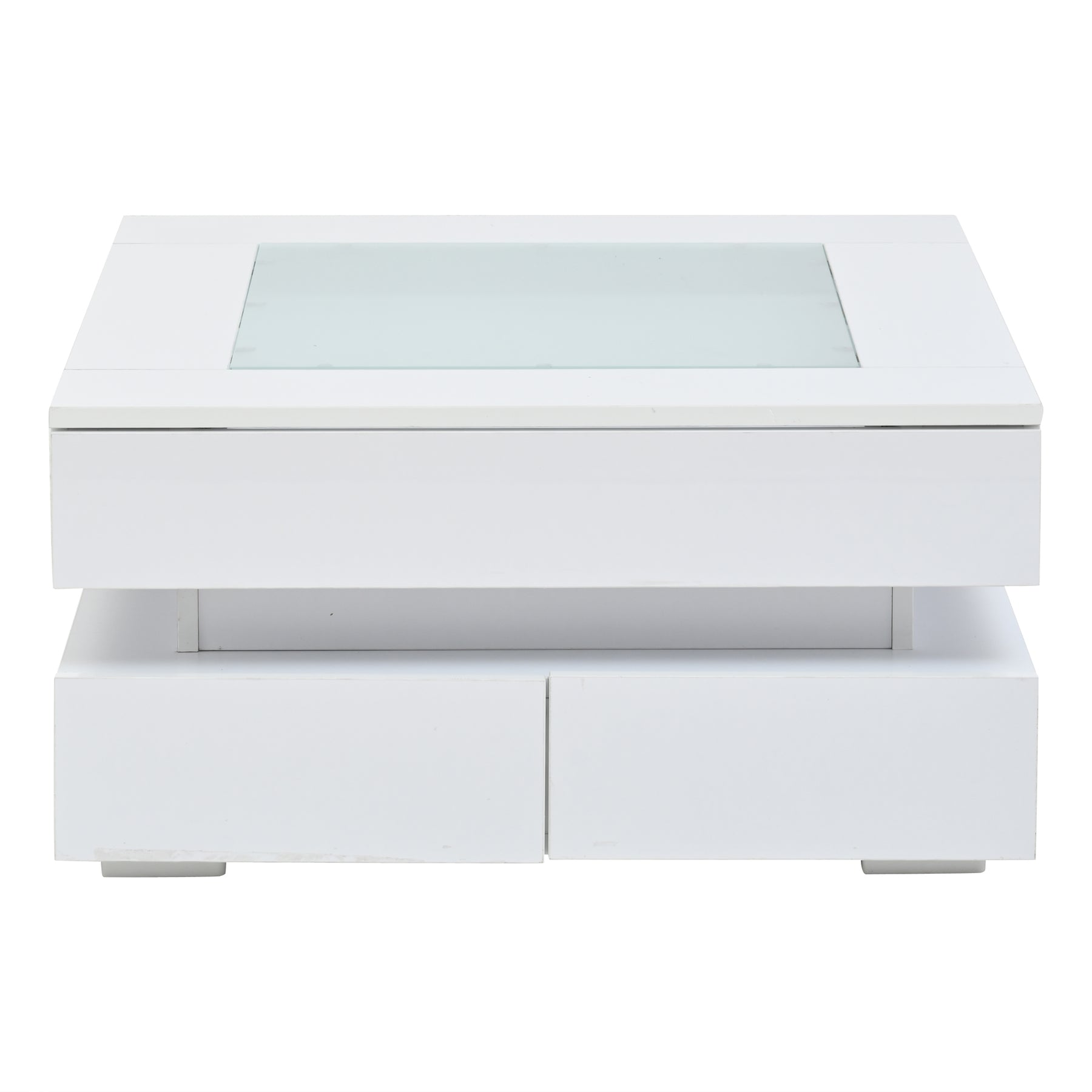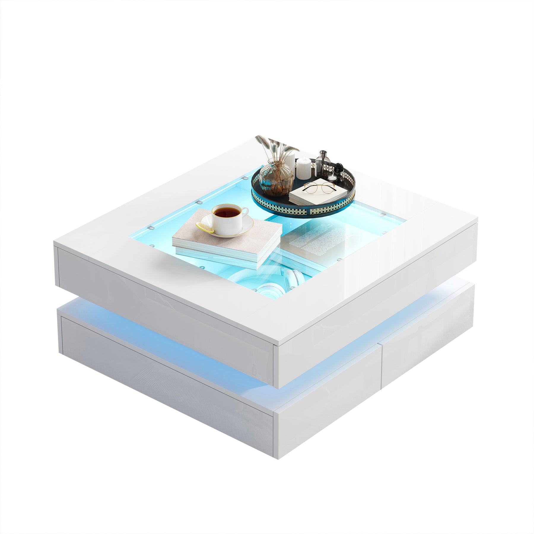 White high gloss coffee table with LED lighting 70x70x35cm SCULPTEN