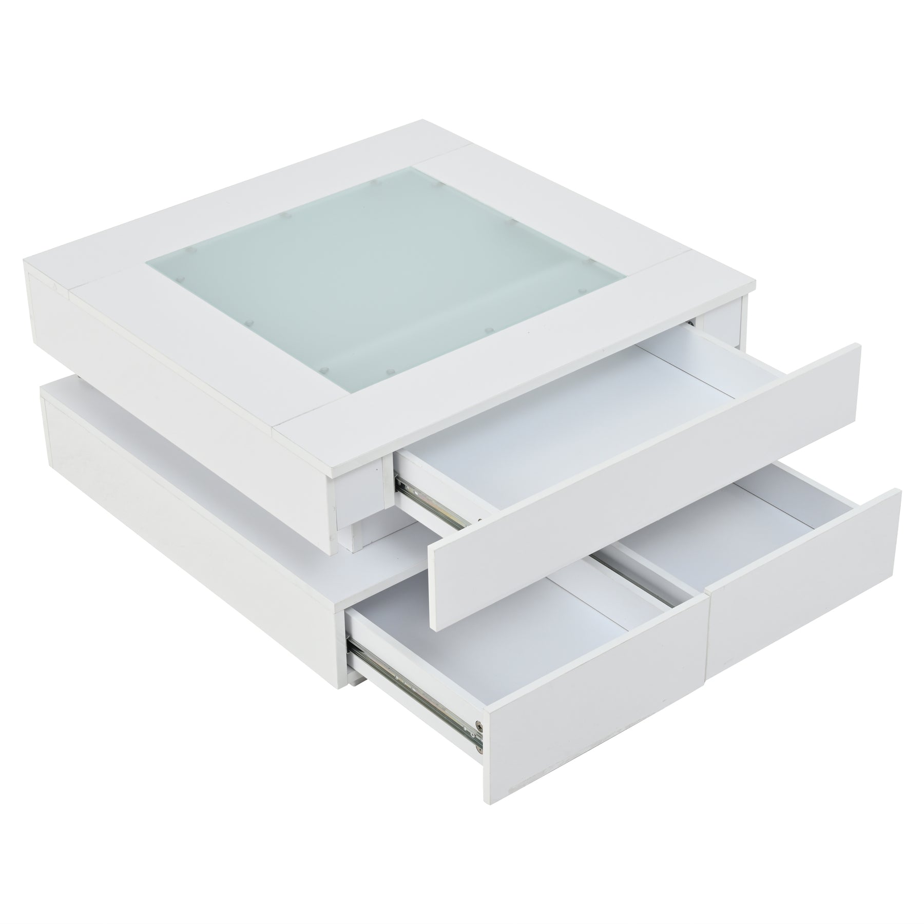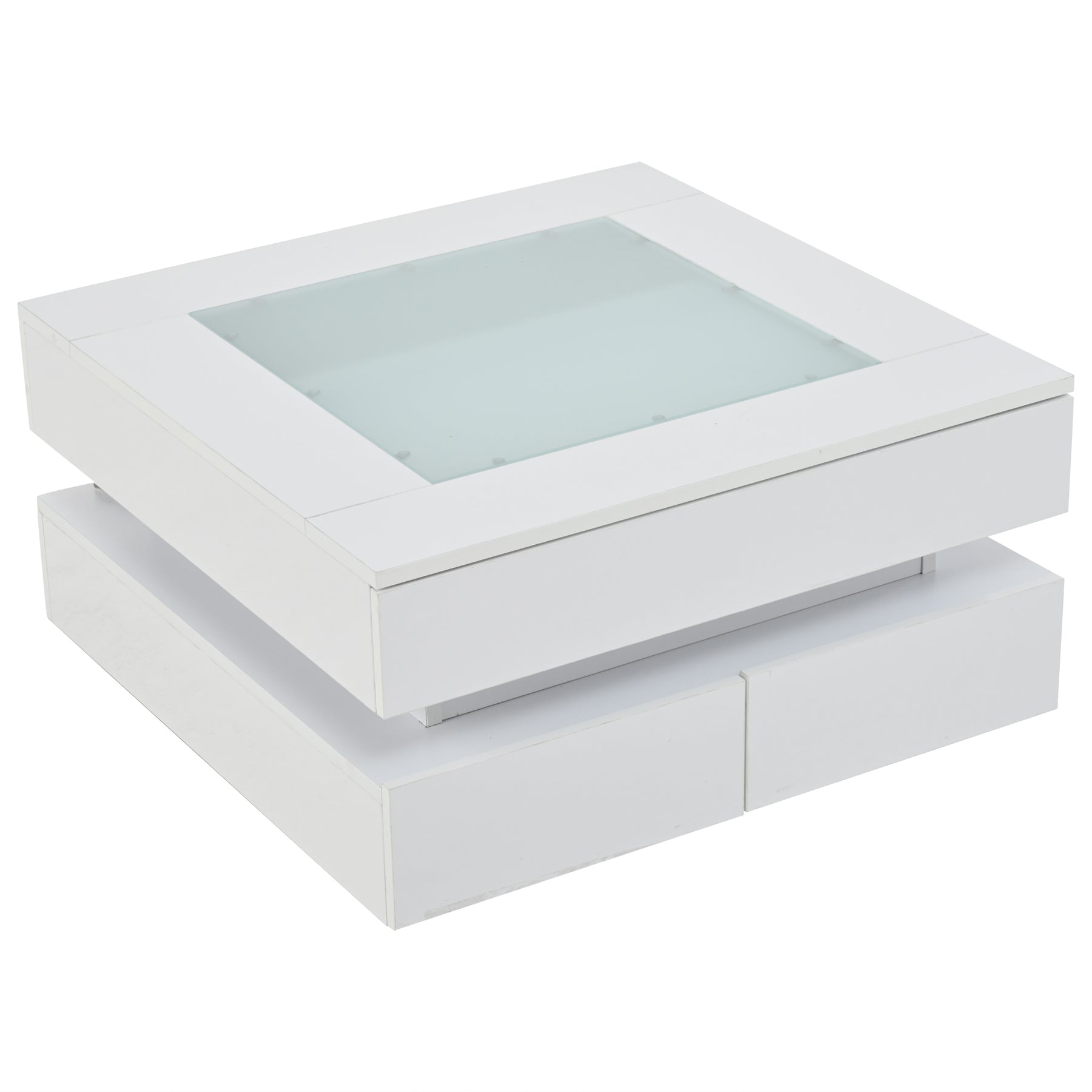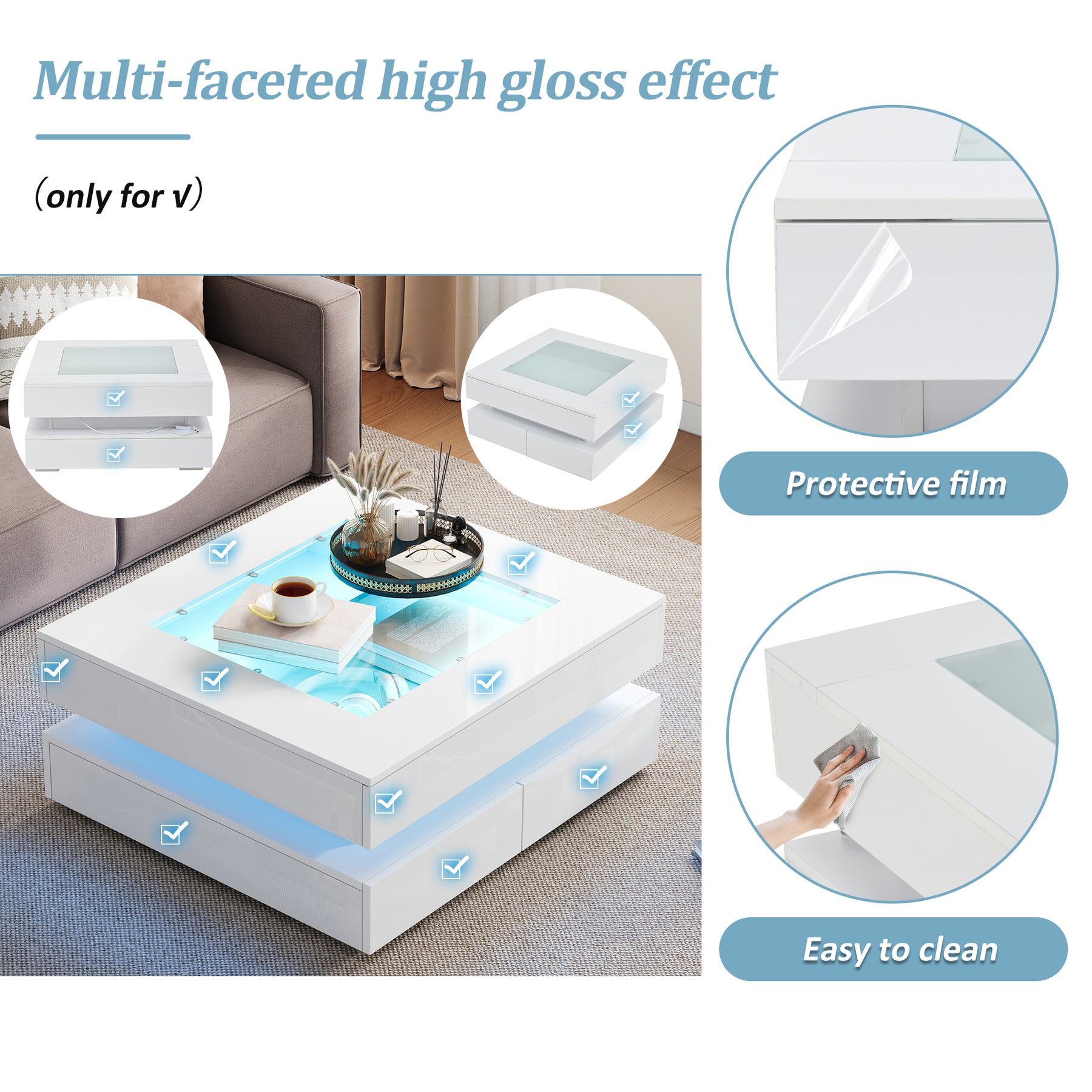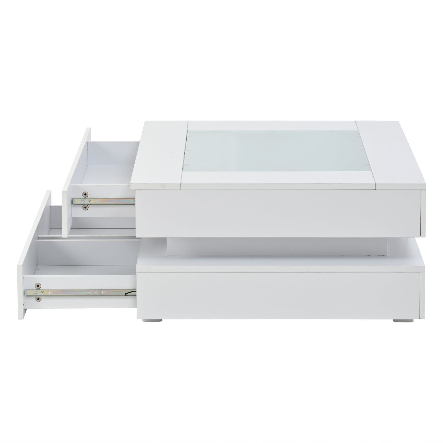 White high gloss coffee table with LED lighting 70x70x35cm SCULPTEN