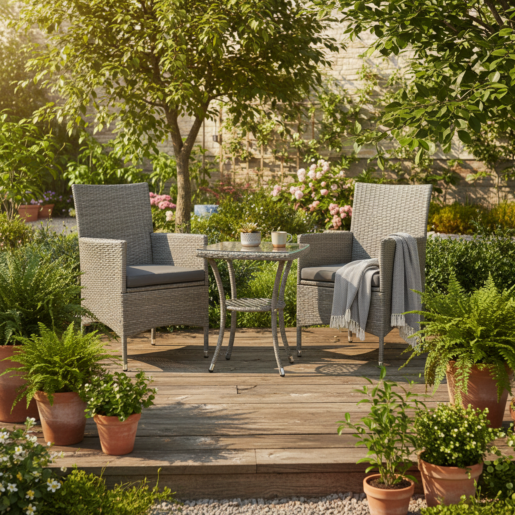 - Space-Saving Design: Compact set fits small patios, balconies, or gardens, maximising your outdoor living area.