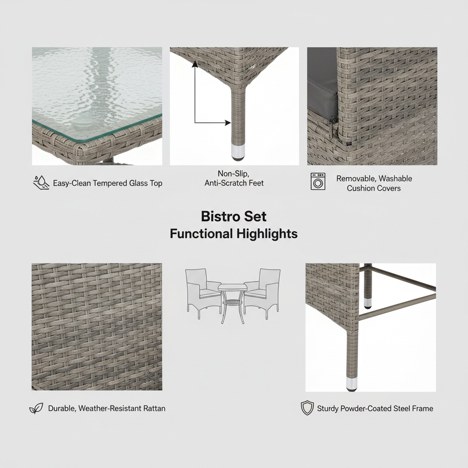 - Durable Materials: All-weather rattan and rust-resistant steel frame ensure long-lasting use in any season.