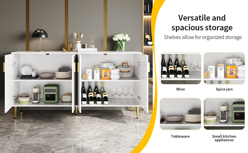 【Modern Wave Design】: Striking wave-patterned doors and gold accents create a luxurious focal point for your dining or living room.