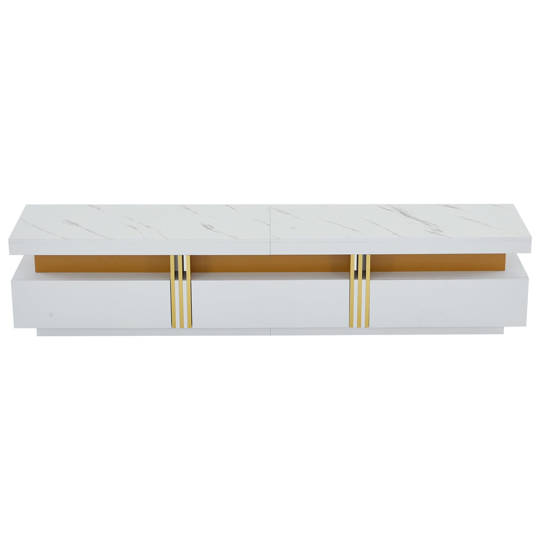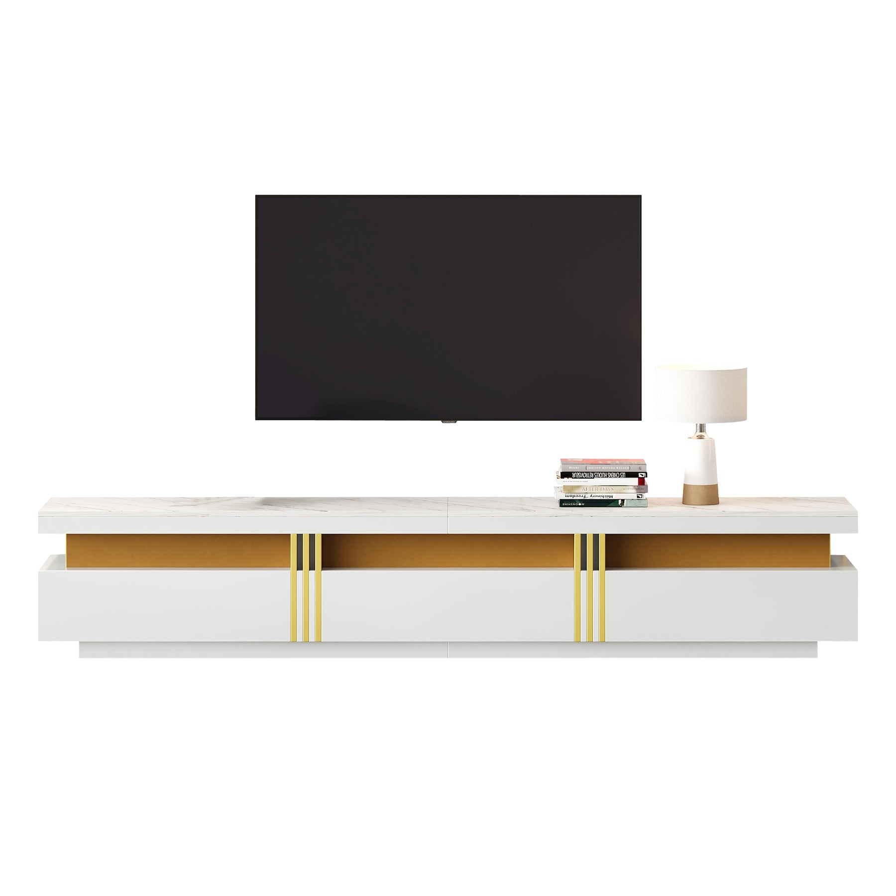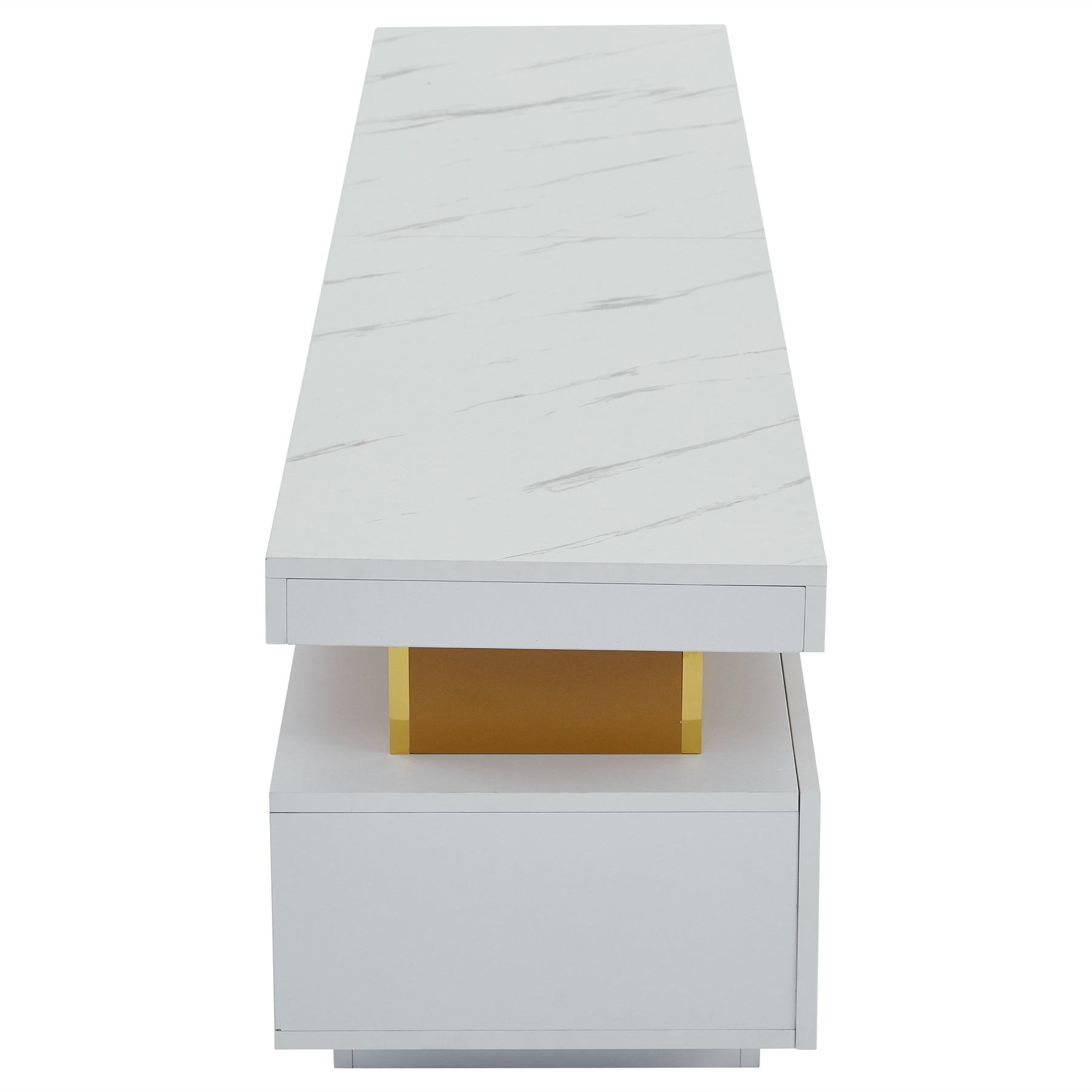 - Stylish and classic design : With its sleek white and marble design, our TV stand adds a touch of modern sophistication to your living room or bedroom decor. The spacious imitation marble tabletop and cabinet body provide an elegant and luxurious look.