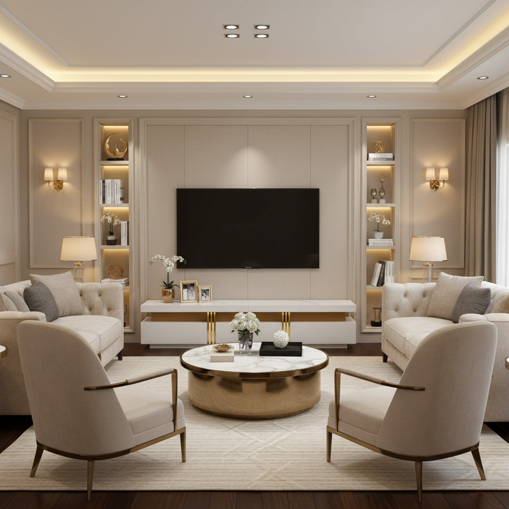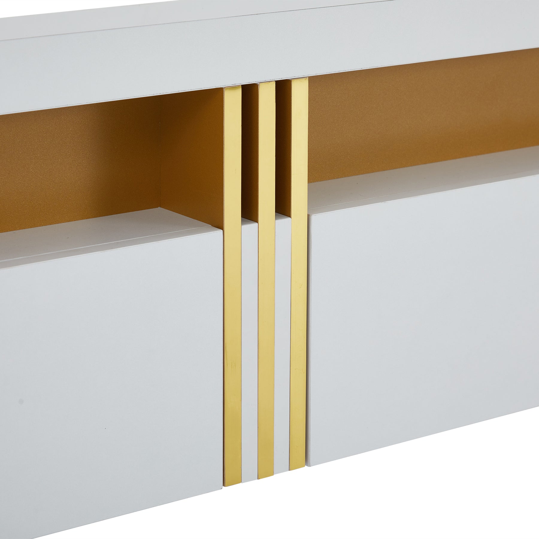 The exquisite faux marble top beautifully complements the golden compartment, adding a luxurious feeling to this TV stand. This TV cabinet is elaborately designed with a marble tabletop, which is sleek and shiny and can create an open and bright indoor environment.