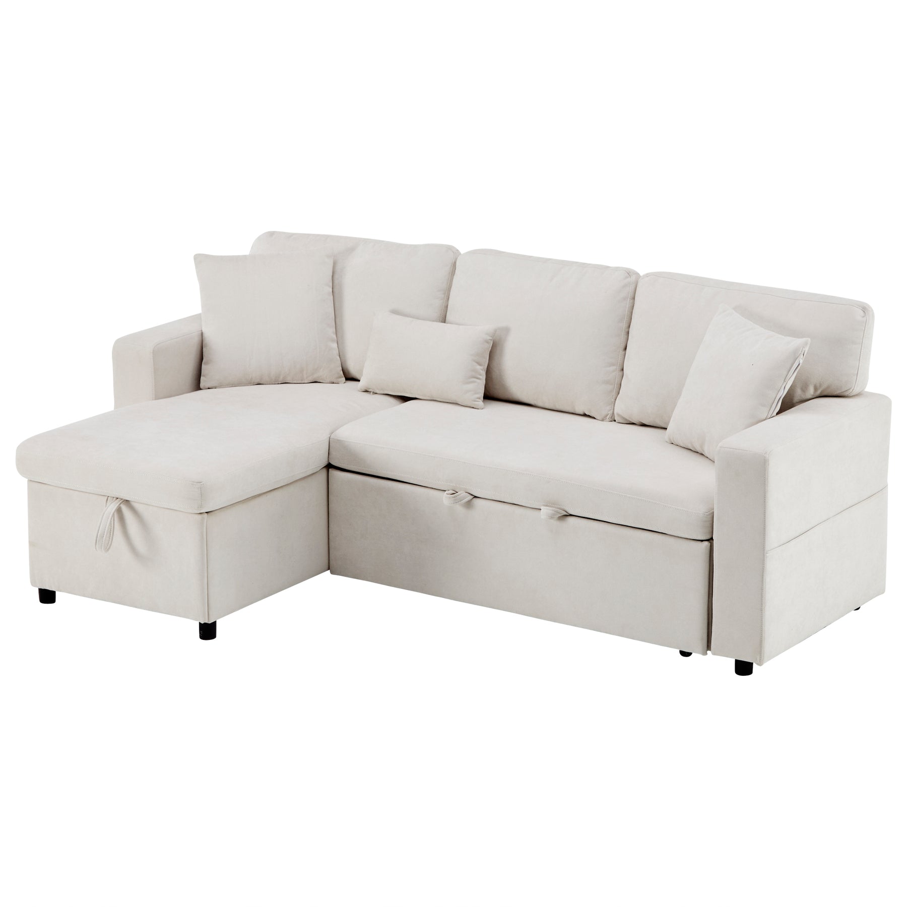 This versatile L-shaped corner sofa bed is the ultimate solution for modern living, seamlessly blending style, comfort, and unmatched functionality. Upholstered in soft, high-quality Oxford fabric in a classic beige tone, it instantly upgrades any living space. Its brilliant modular design allows the ottoman and pull-out bed section to be easily reversed, adapting perfectly to any room layout. Complete with hidden storage, an integrated shelf, and a USB port, this sofa is engineered for total convenience, making it ideal for smaller households that demand both elegance and practical features.