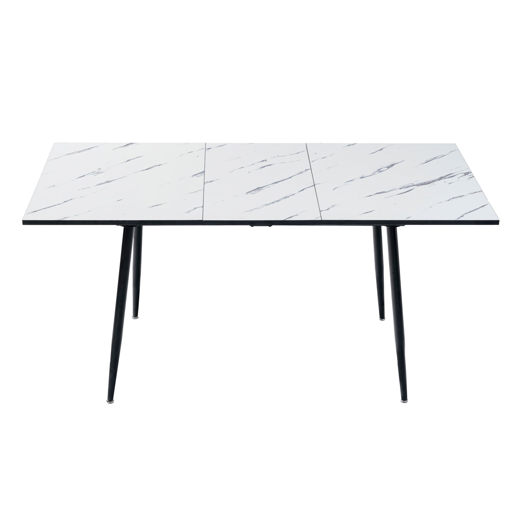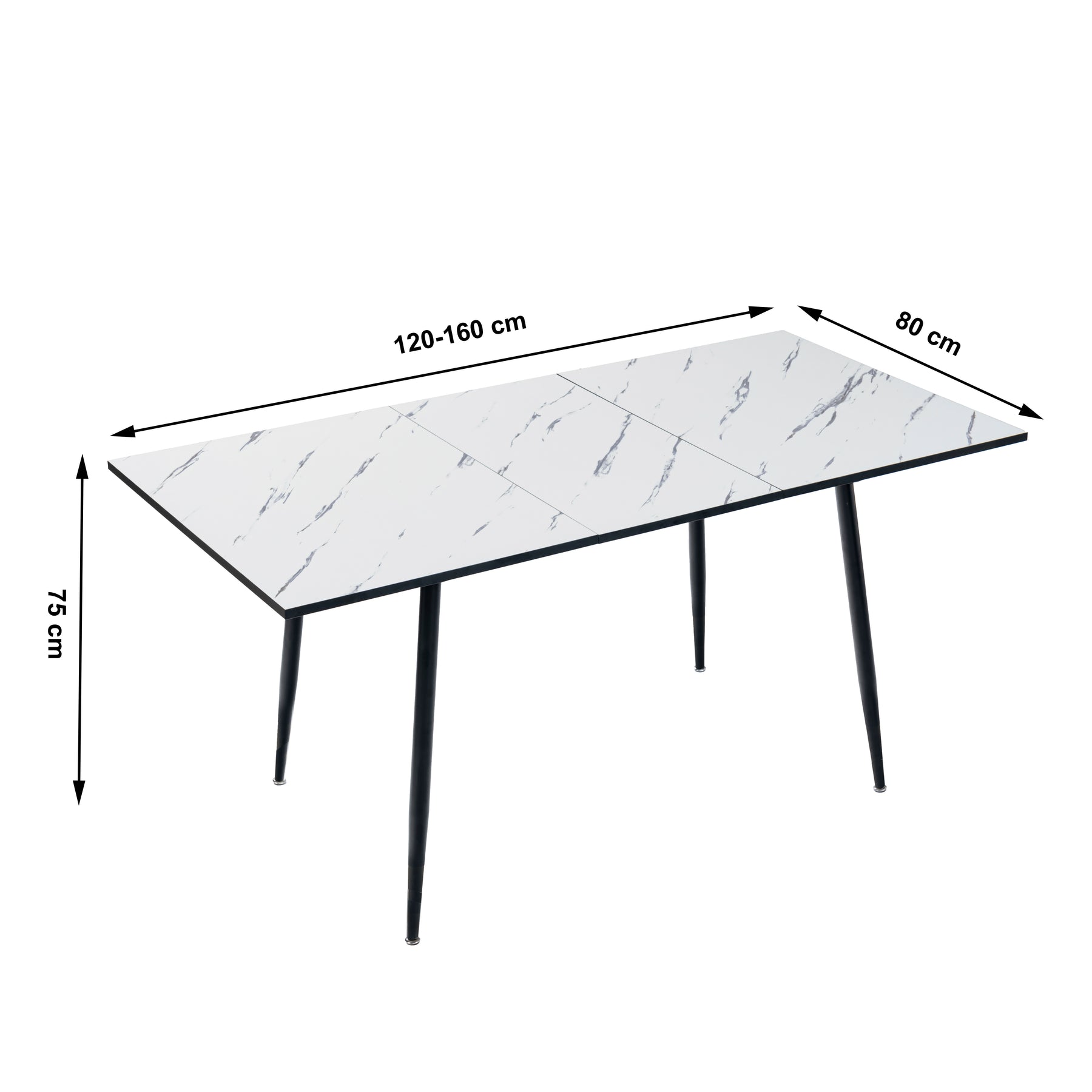 Rectangular extendable white dining room table with Scandinavian style Imitation marble effect dot feet 120-160 cm WHALEN WHITE MARBLE STRETCH TABLE BLACK LEG