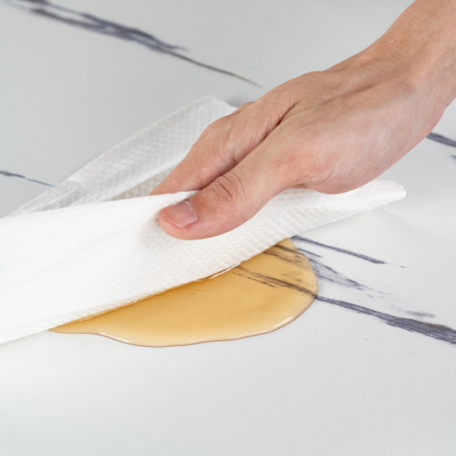 Modern & Elegant Style – White marble-effect top with black and gold accents to fit multiple décor themes.